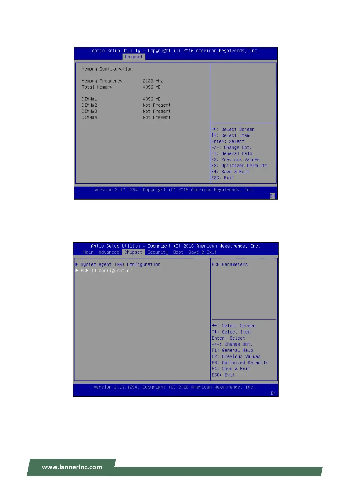 Once accessed, information about memory frequency, total memory, and DIMM#1-4 status will be displayed.