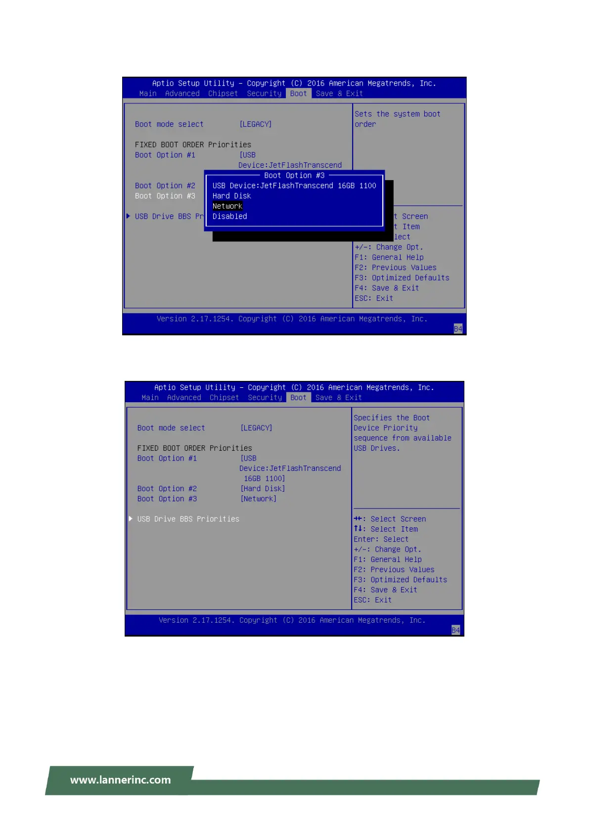 Lanner NCA-5210 - Boot Option #3; USB Device BBS Priorities
