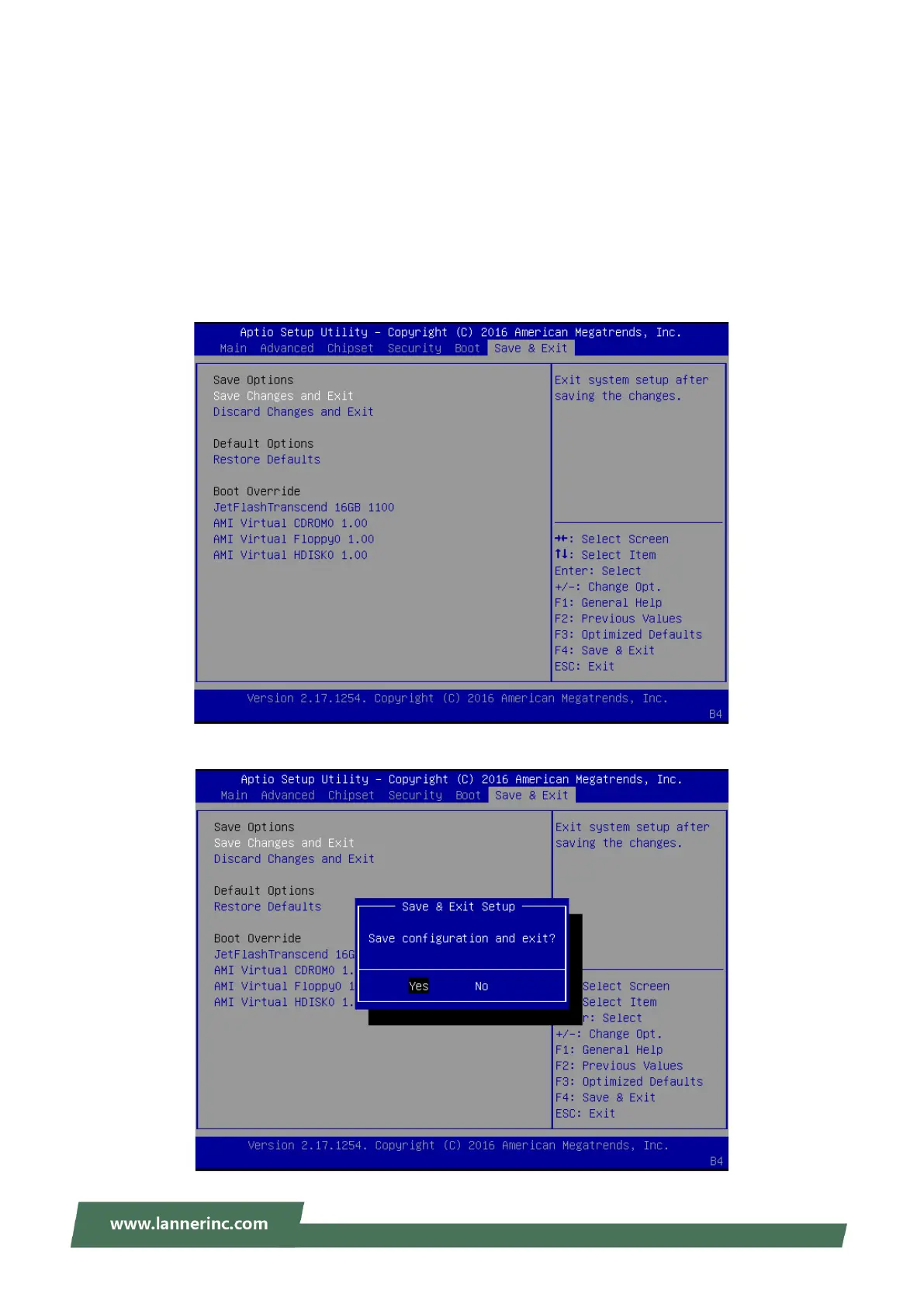 Use [<--] / [-->] to select [Save & Exit] setup screen. Under this screen, you may use [↑] [↓] to select an item