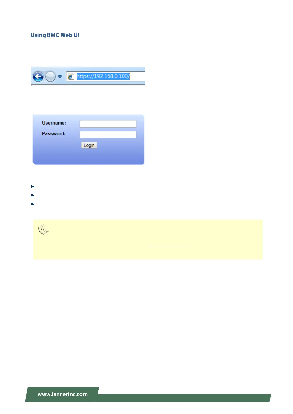Initial access of BMC prompts you to enter username and password. A screenshot of the login screen is
