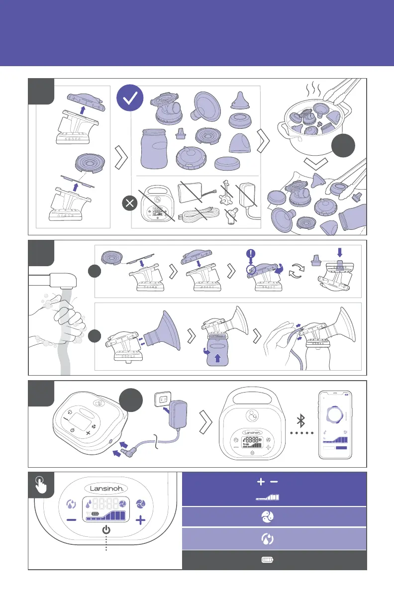 Lansinoh SMARTPUMP 3.0 - Quick Start Guide; Assembly and Component Overview; Control Panel and Display Functions
