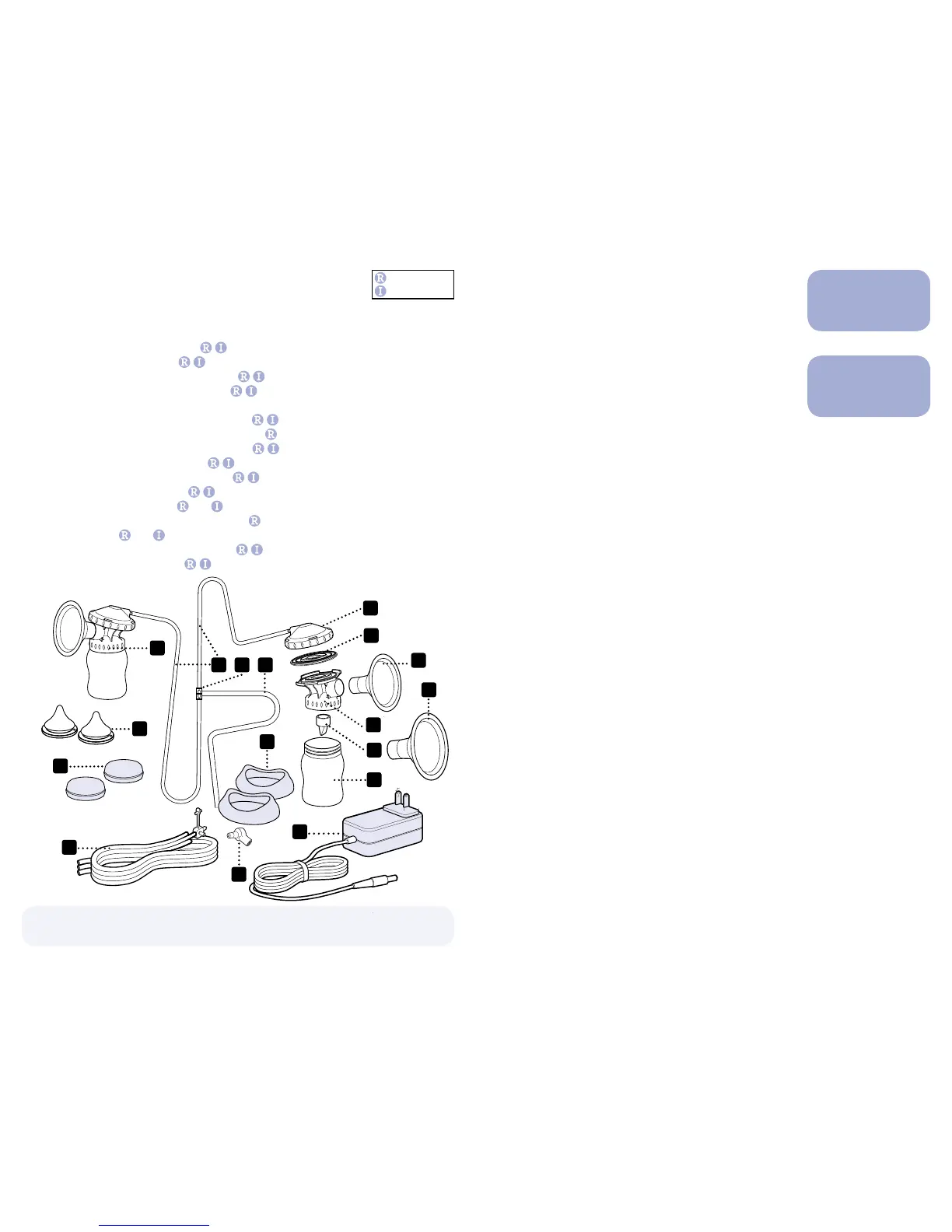 2. Before assembling the breastmilk expression set, be sure that all of the parts are