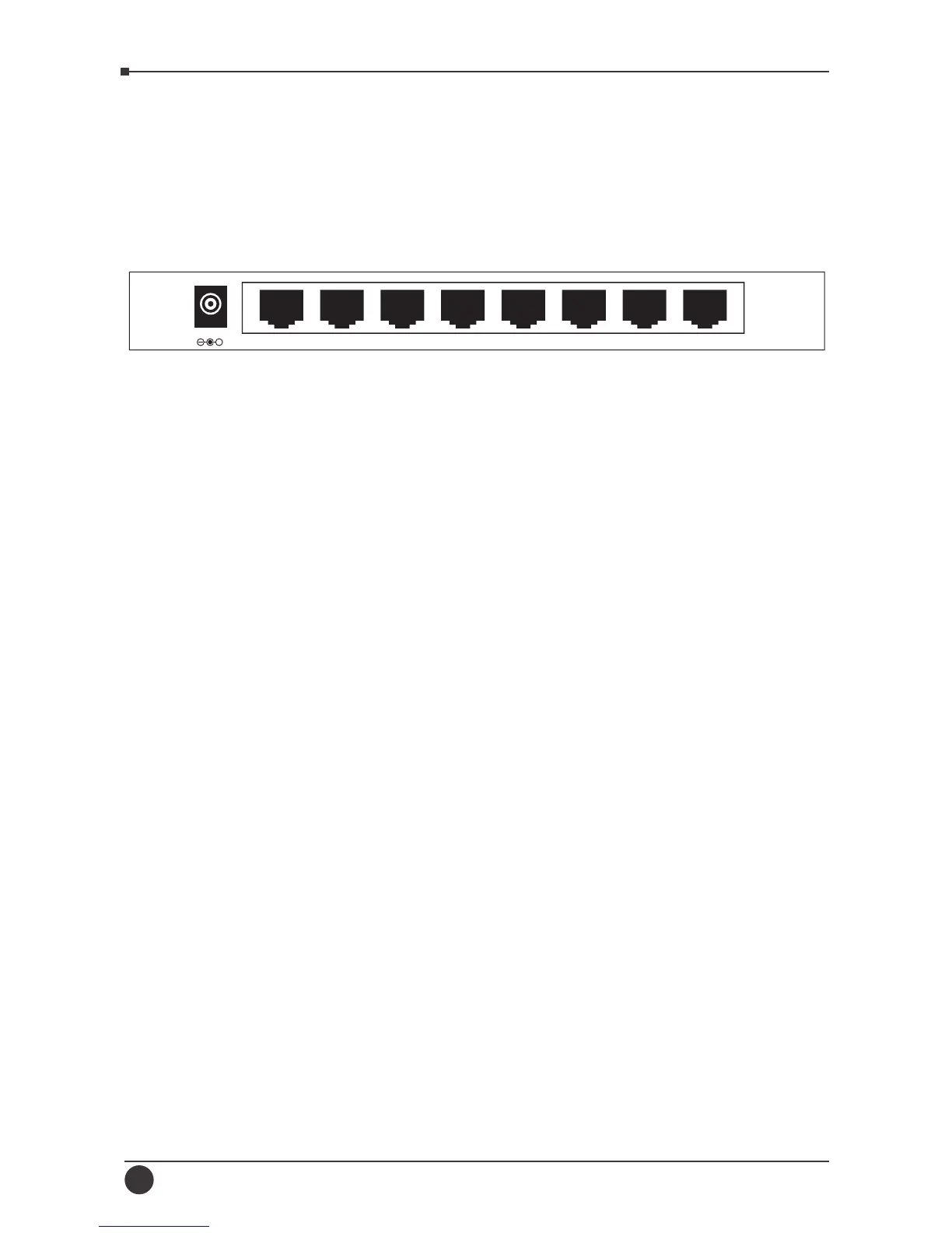 The Rear Panel of the Mini Switch 800 consists of 8x 10/100 N-Way UTP