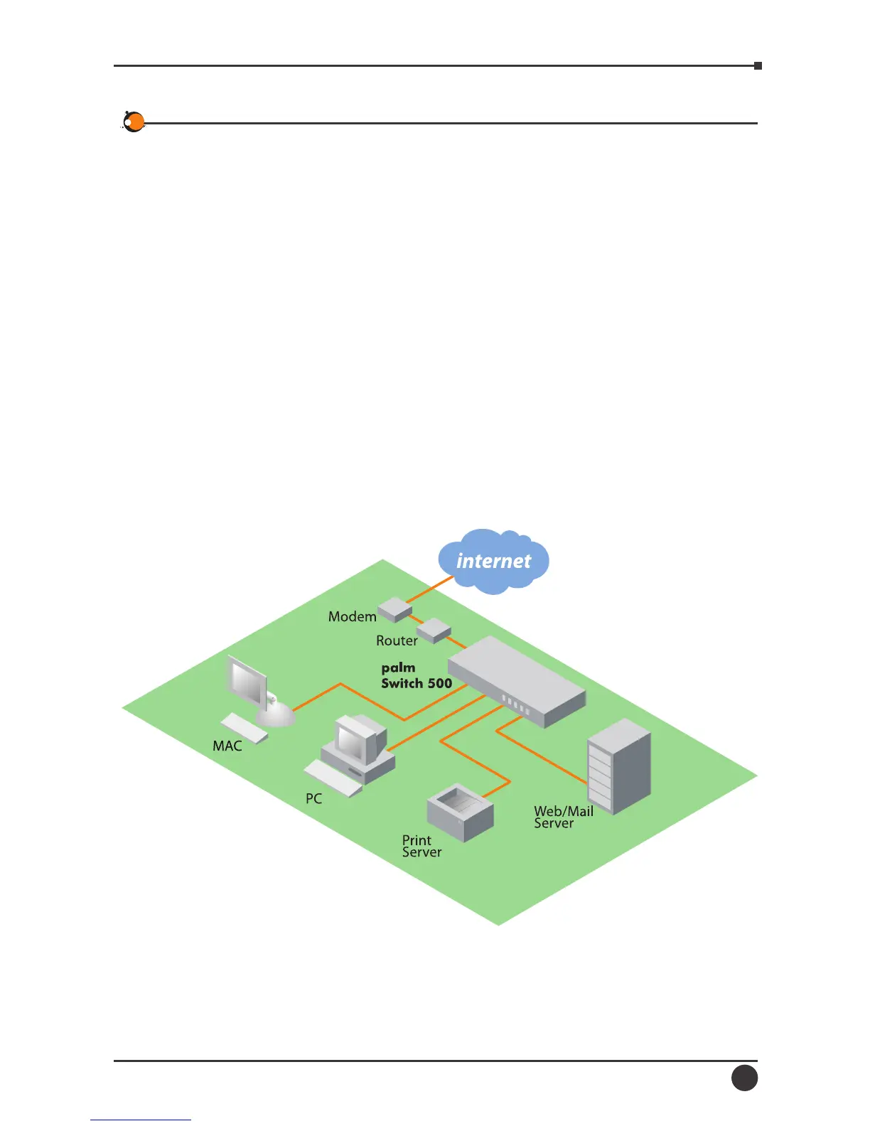 a standalone switch to which personal computers, server, printer server are