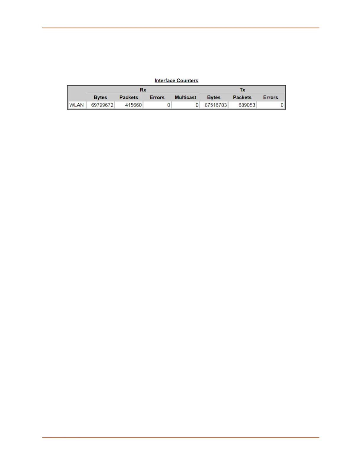 This table shows statistics for data received by and transferred from the wireless client interface.