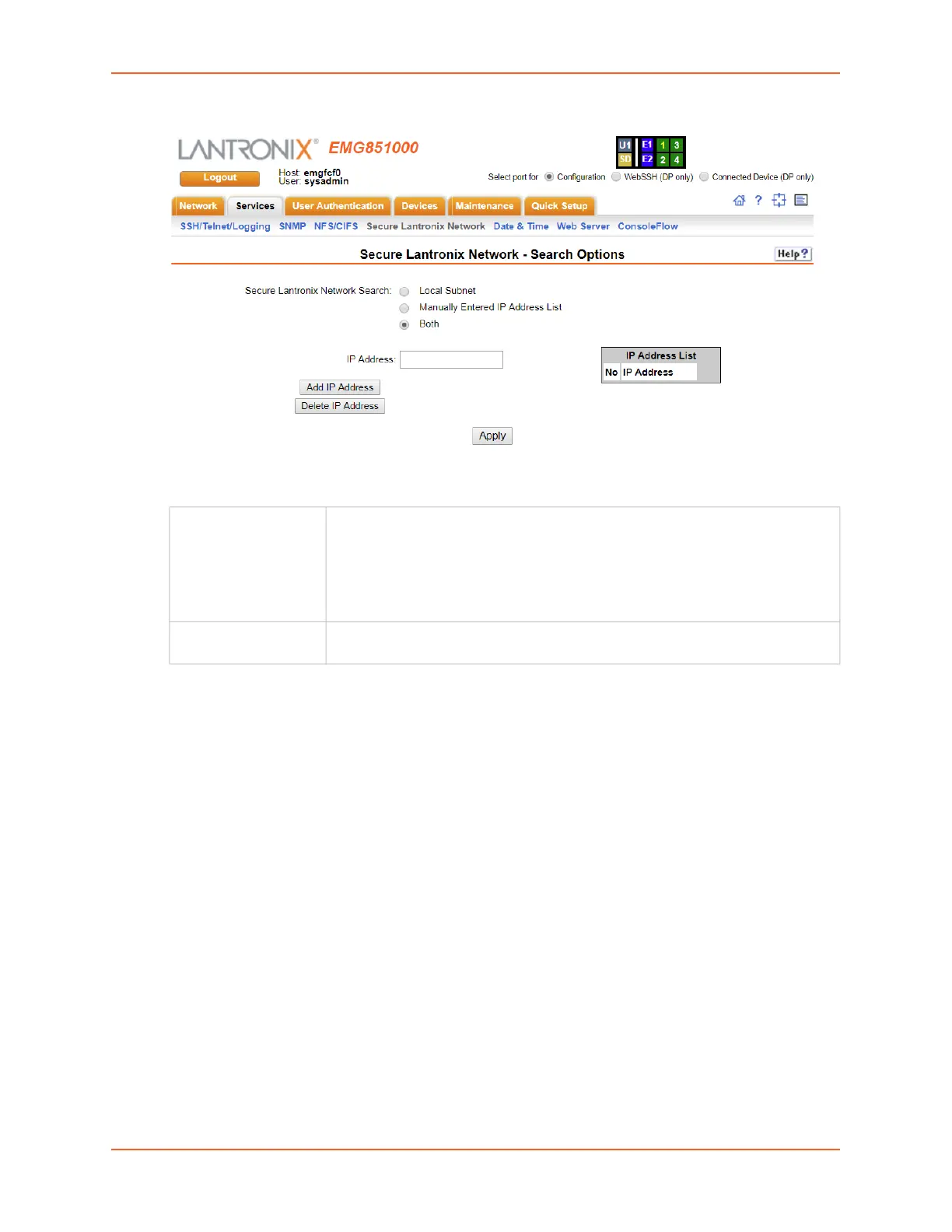 Figure 8-8 Services > Secure Lantronix Network - Search Options