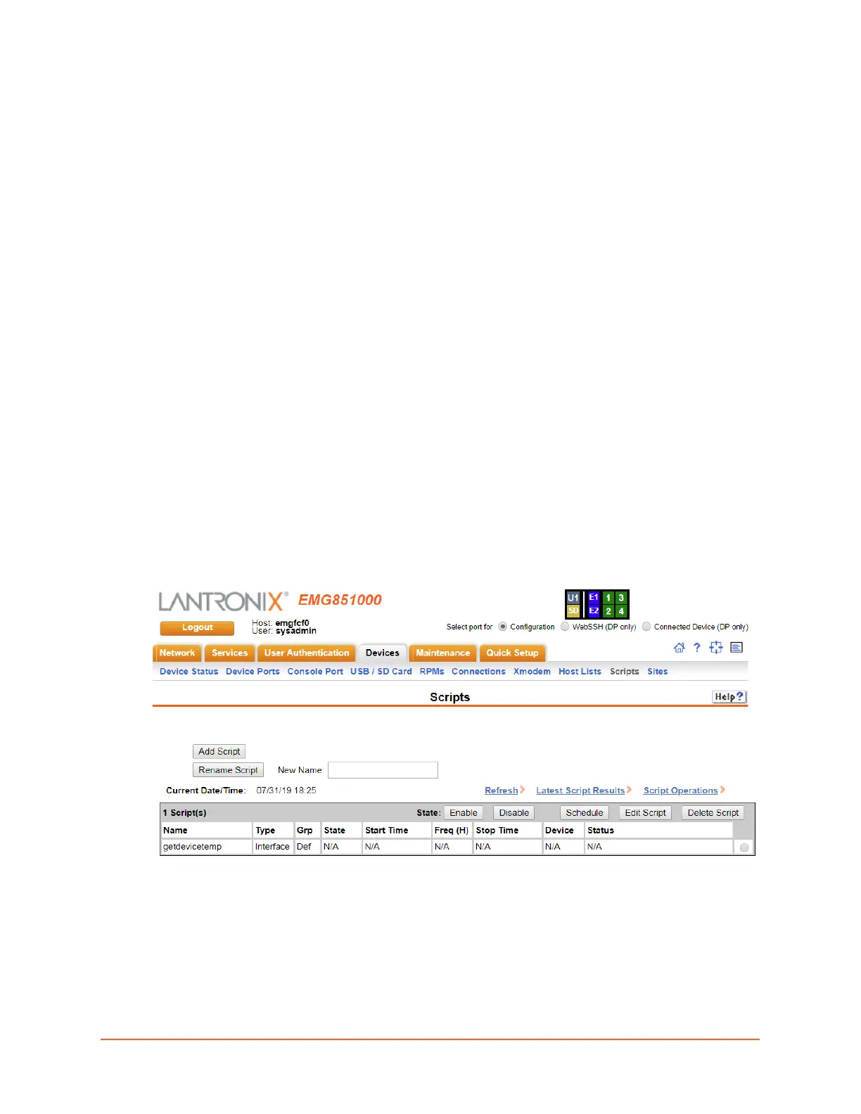 1. Click the Devices tab and select the Scripts option. The Scripts page displays.