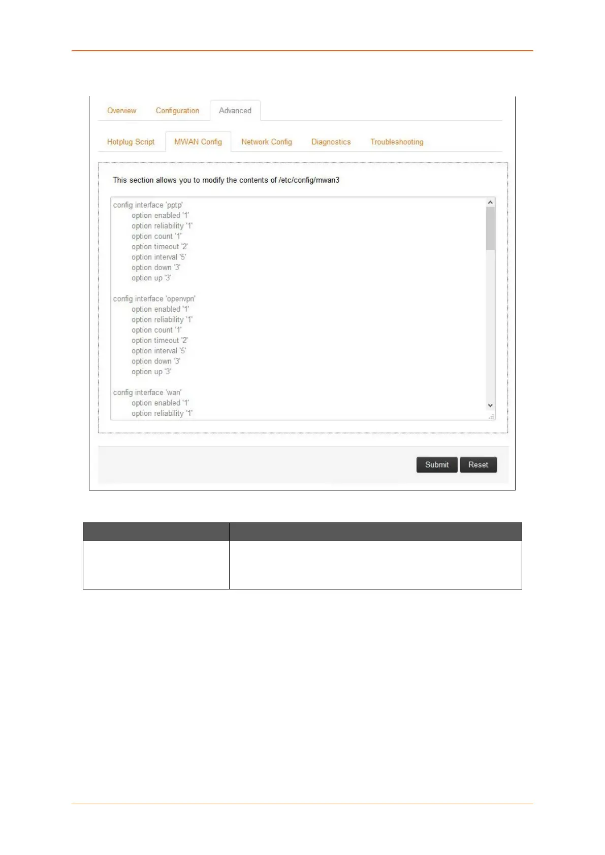 Table 10.2-12: Advance Configuration for MWAN Interfaces