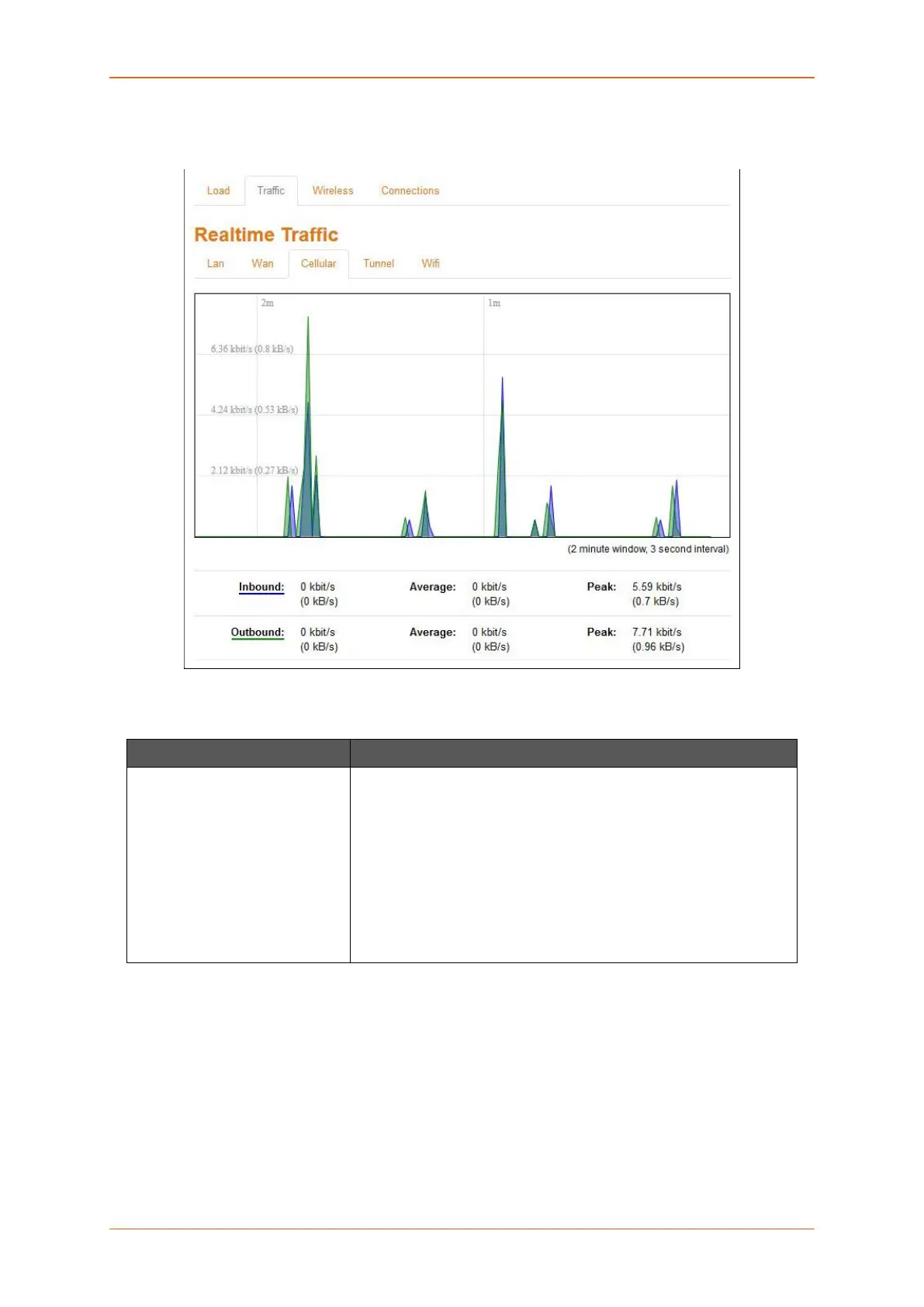 Traffic (Inbound / Outbound) Graph shows the periodic average Cellular Traffic on the Router.