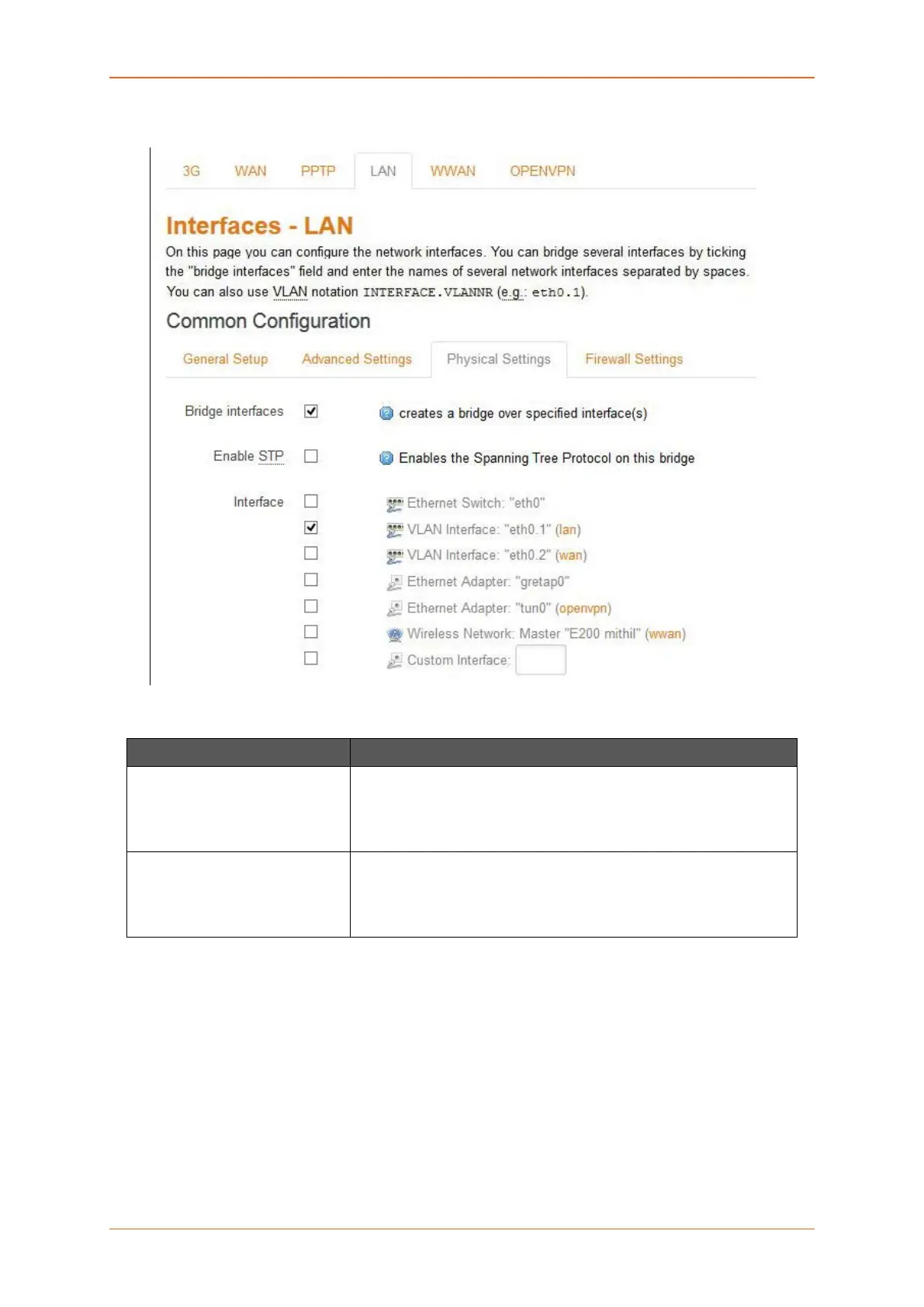 Bridge Interfaces Click to enable creating a bridge over multiple interfaces.