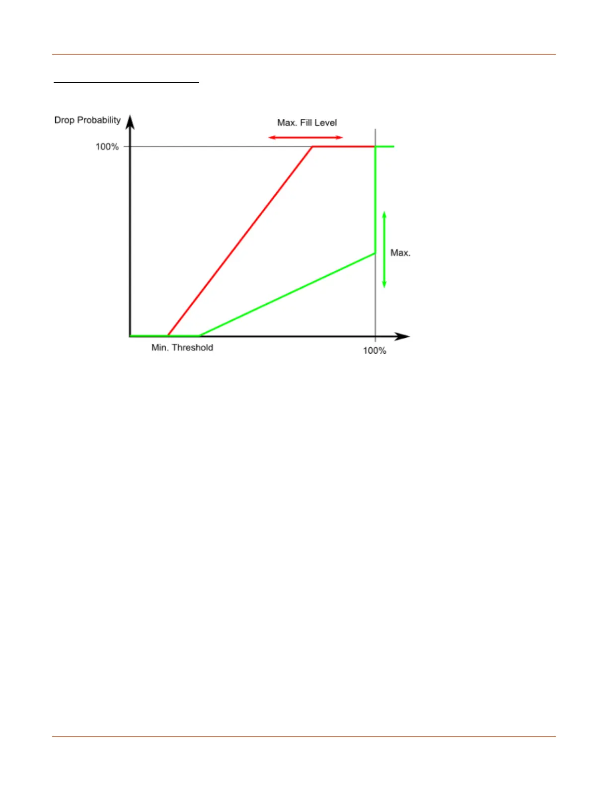 The drop probability for frames increases linearly from zero (at Min average queue filling level) to Max Drop