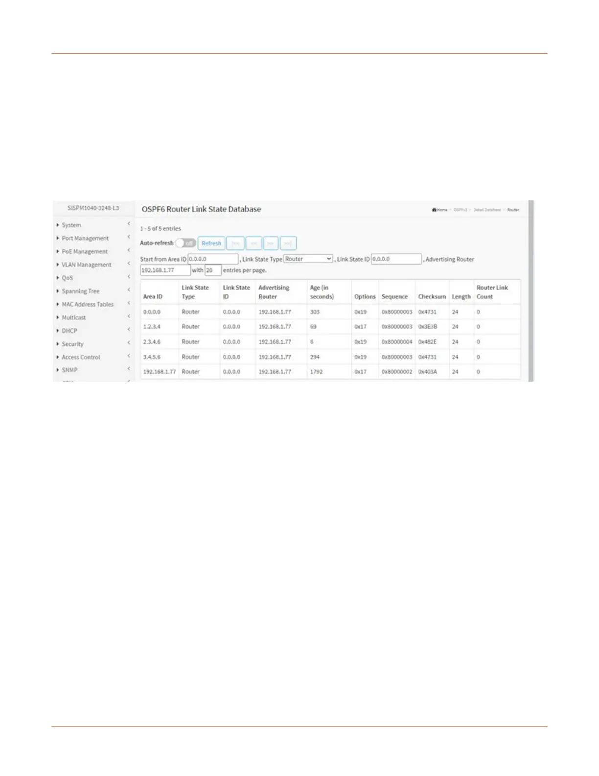<< : Updates the table entries, ending at the entry prior to the first entry currently displayed. If the first entry of the