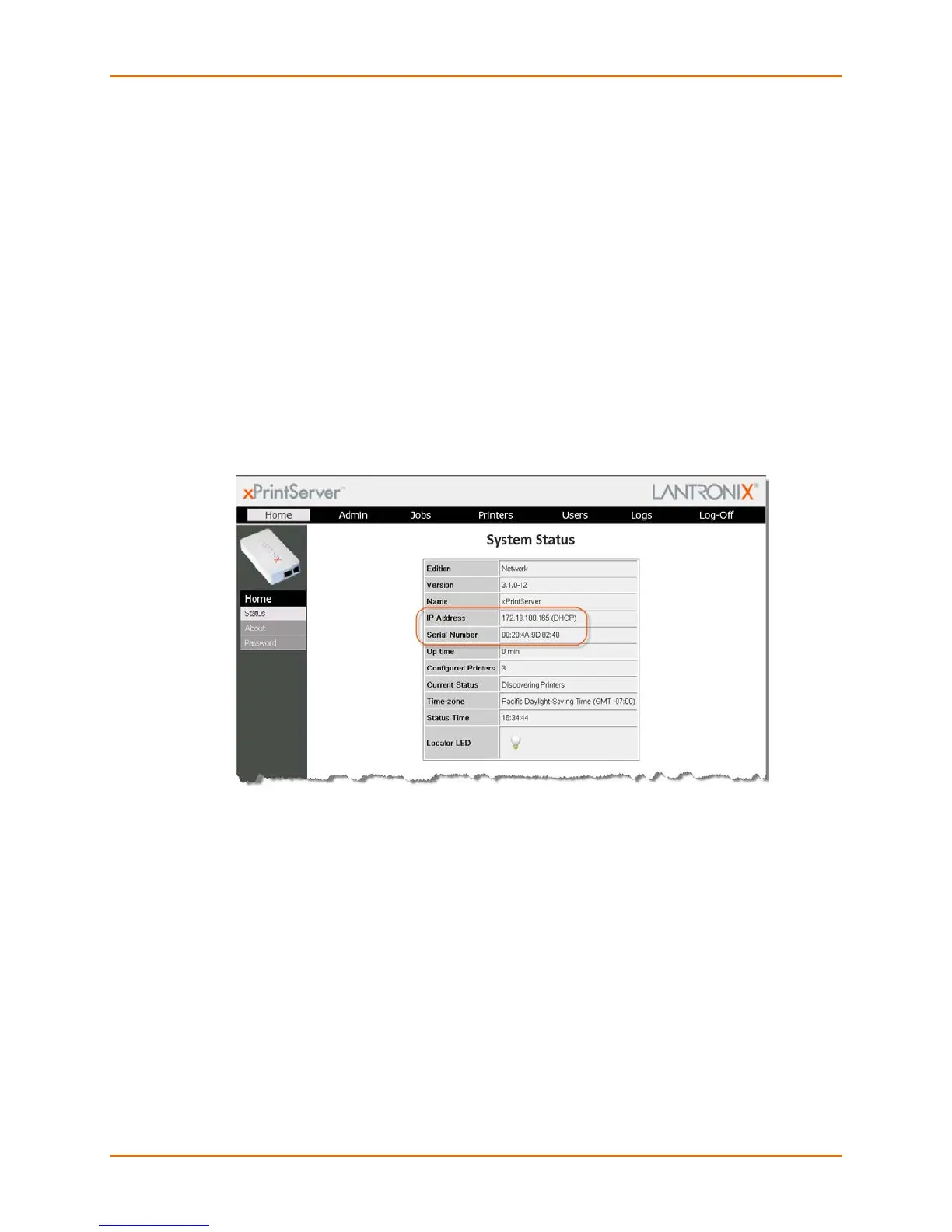 7. Take note of the IP address of your xPrintServer device for all future logins.