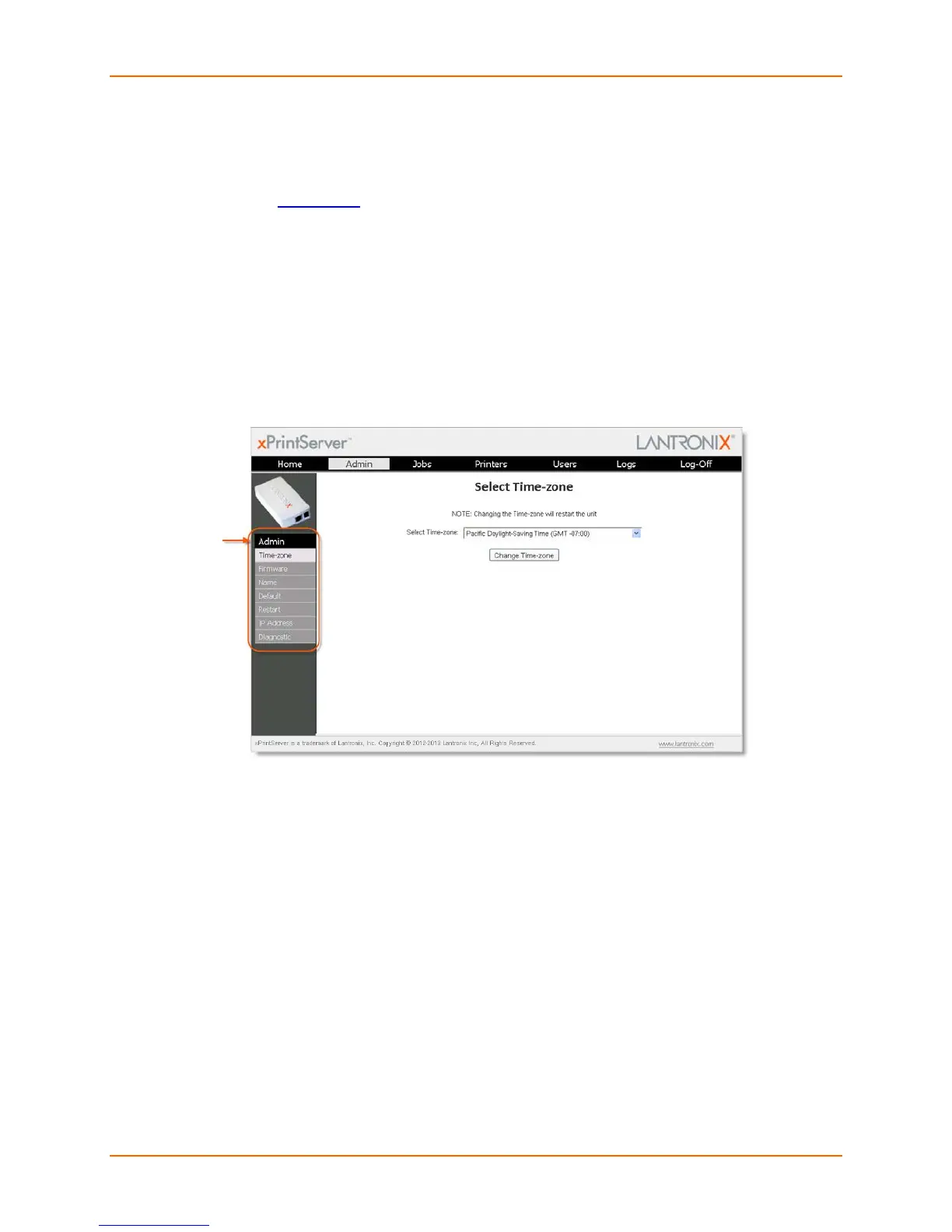 the Admin tab. This page can also be accessed by clicking the Time-zone link on the left