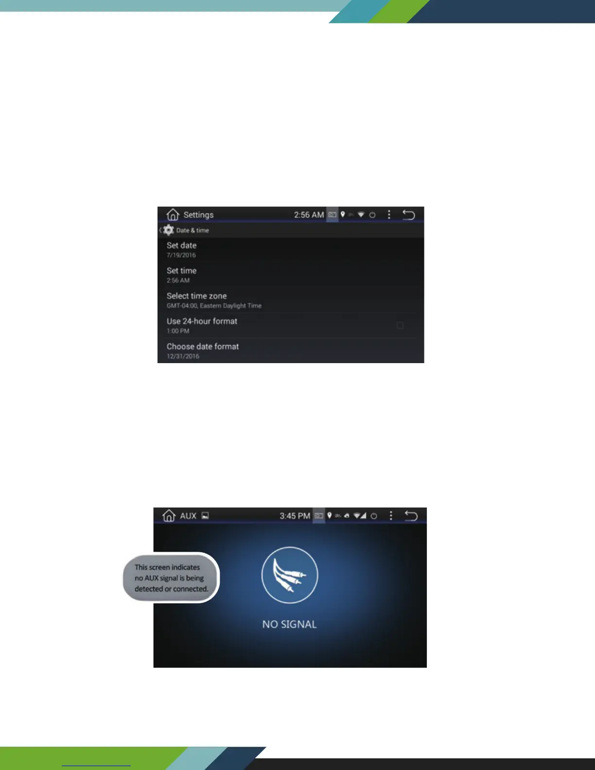 Note: Auxiliary app will display “No Signal” if no video signal is connected. Screen controls will not become active