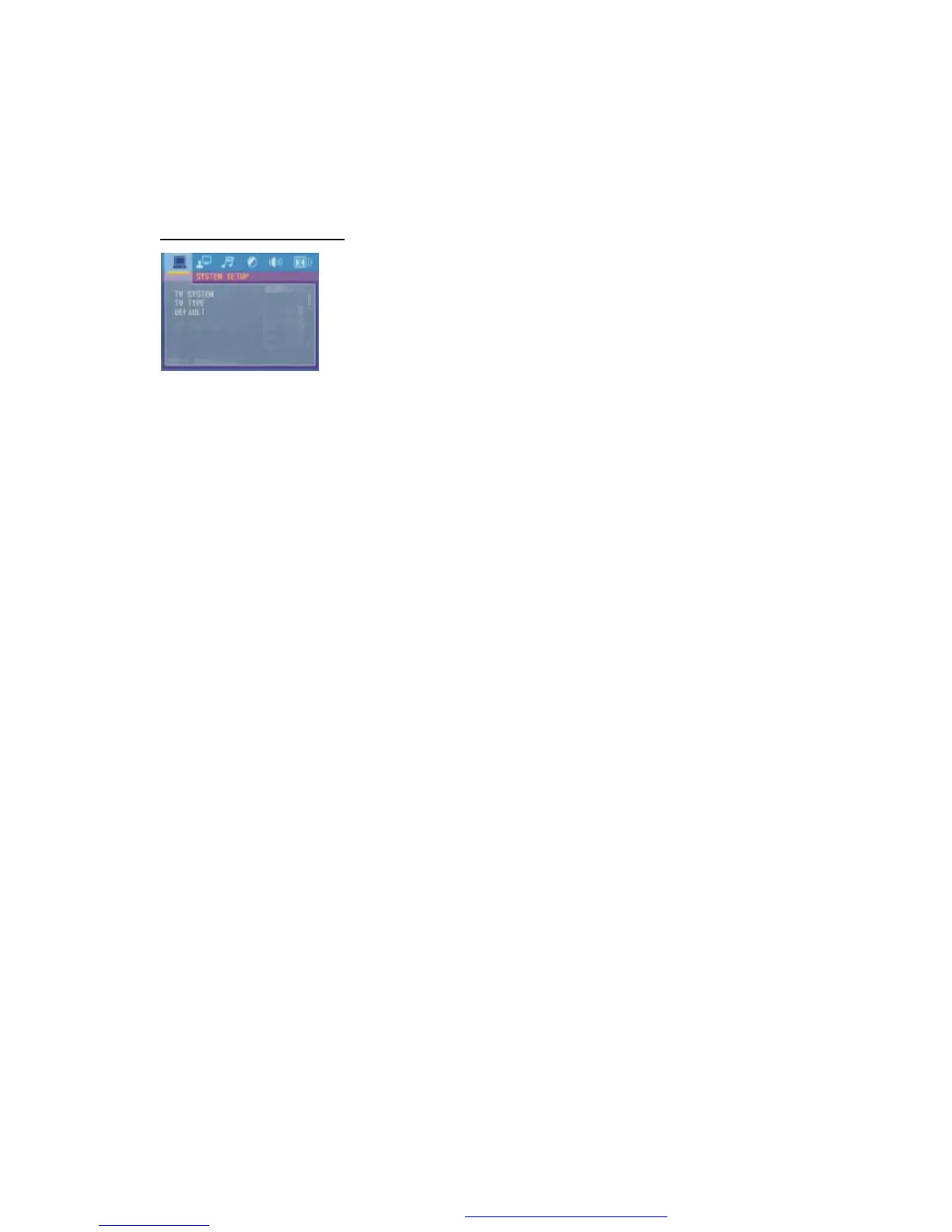 For the DVD System Menu, there are 6 setup pages in all. They display as follows: