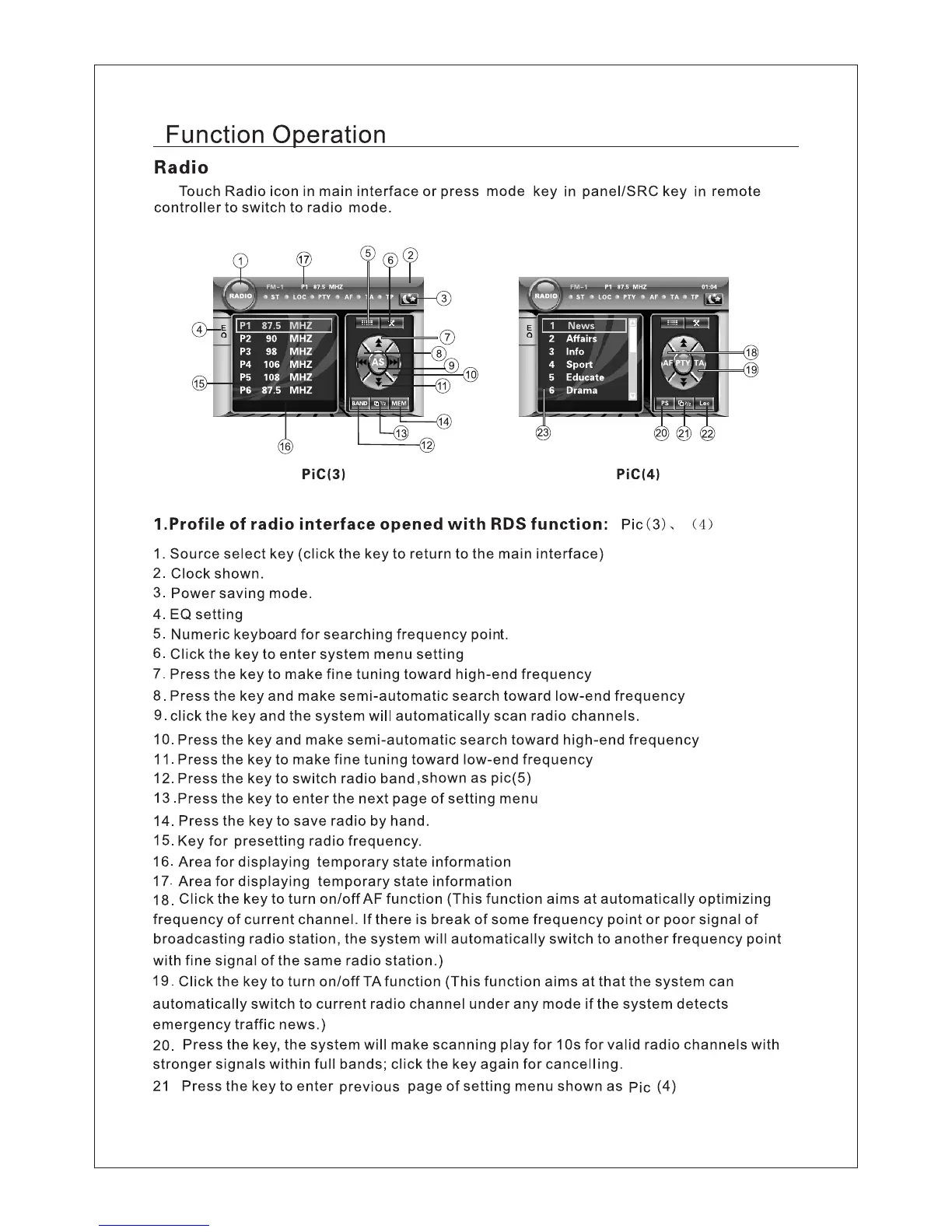 Lanzar SDN695BT - Function Operation - Radio; Radio Interface with RDS Function