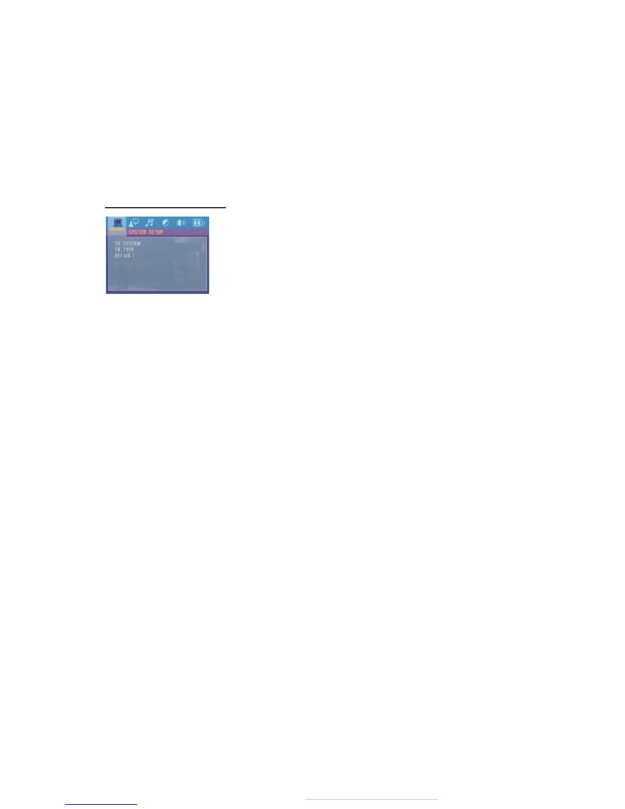 For the DVD System Menu, there are 6 setup pages in all. They display as follows: