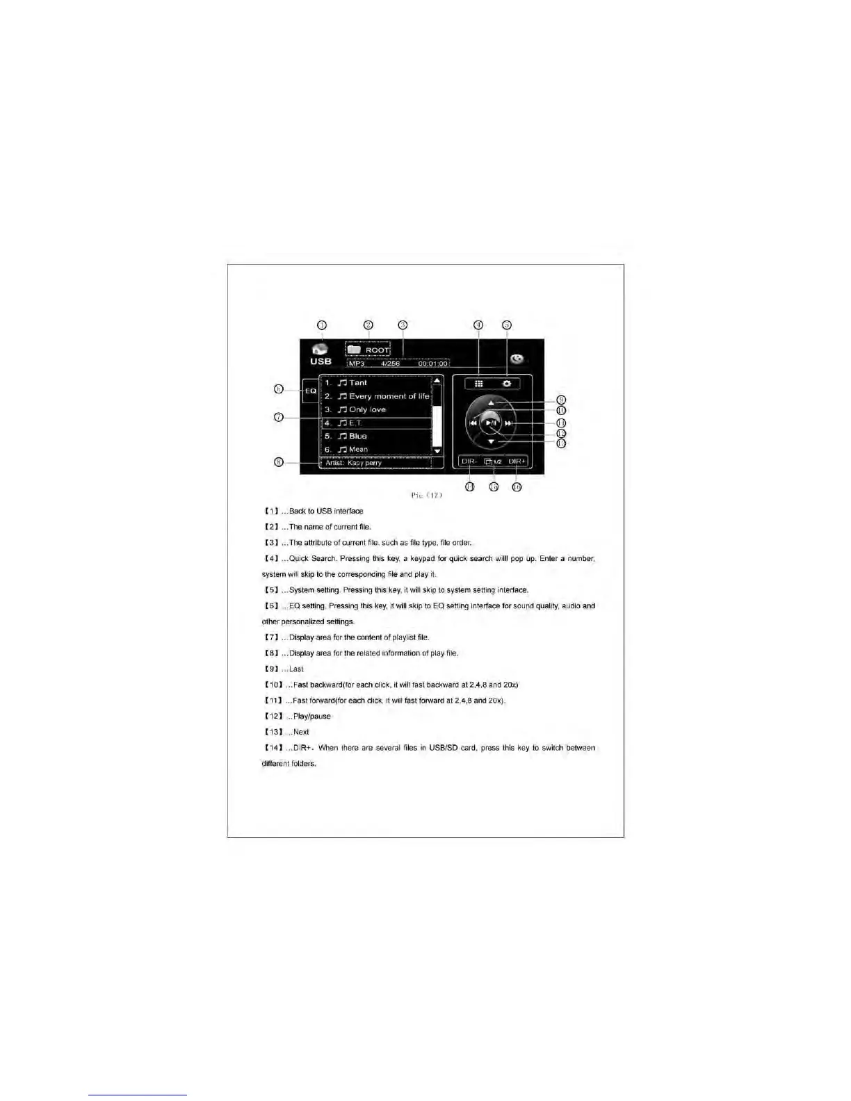 ( 14 ) ... DIR+ . When there are several files in USBJSD card, press this key