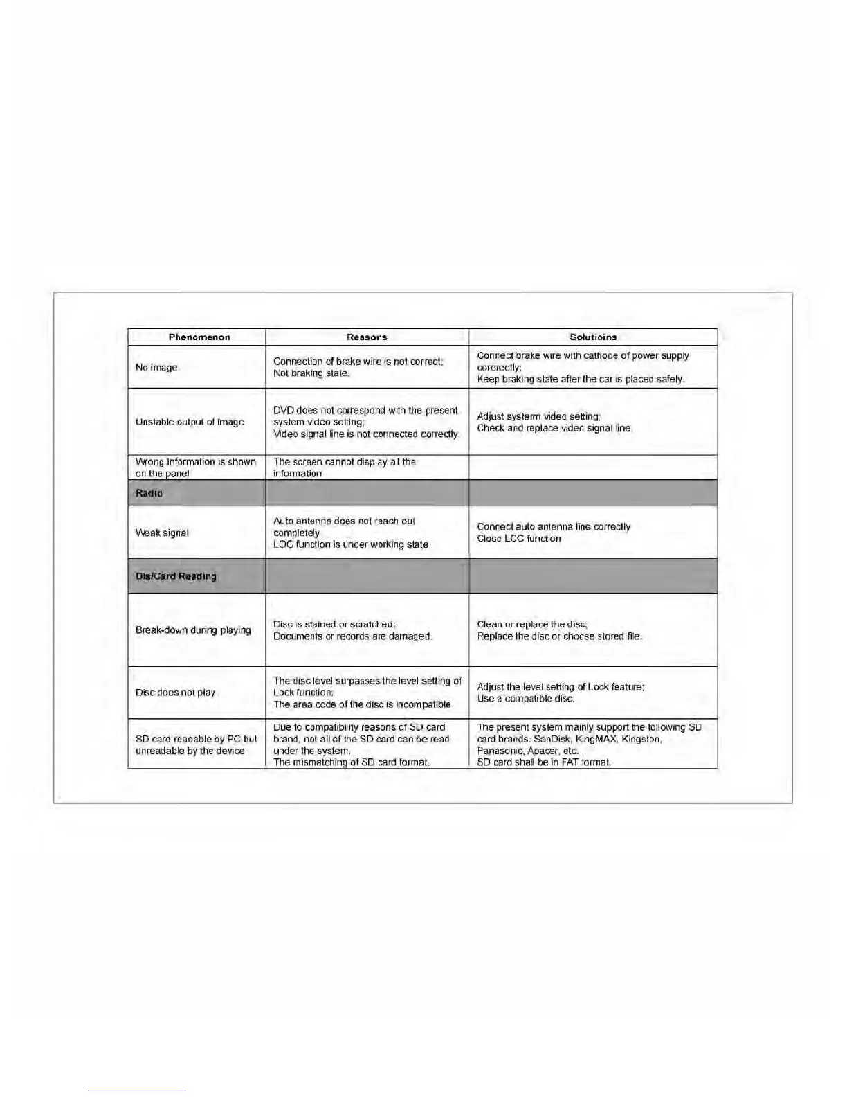 unreadable by the device under the system. Panasonic, Apacer, etc.