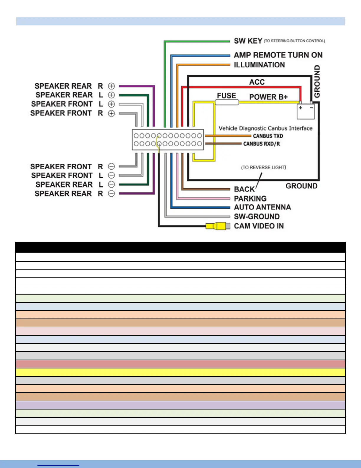Front left speaker White (+) White/Black (-)