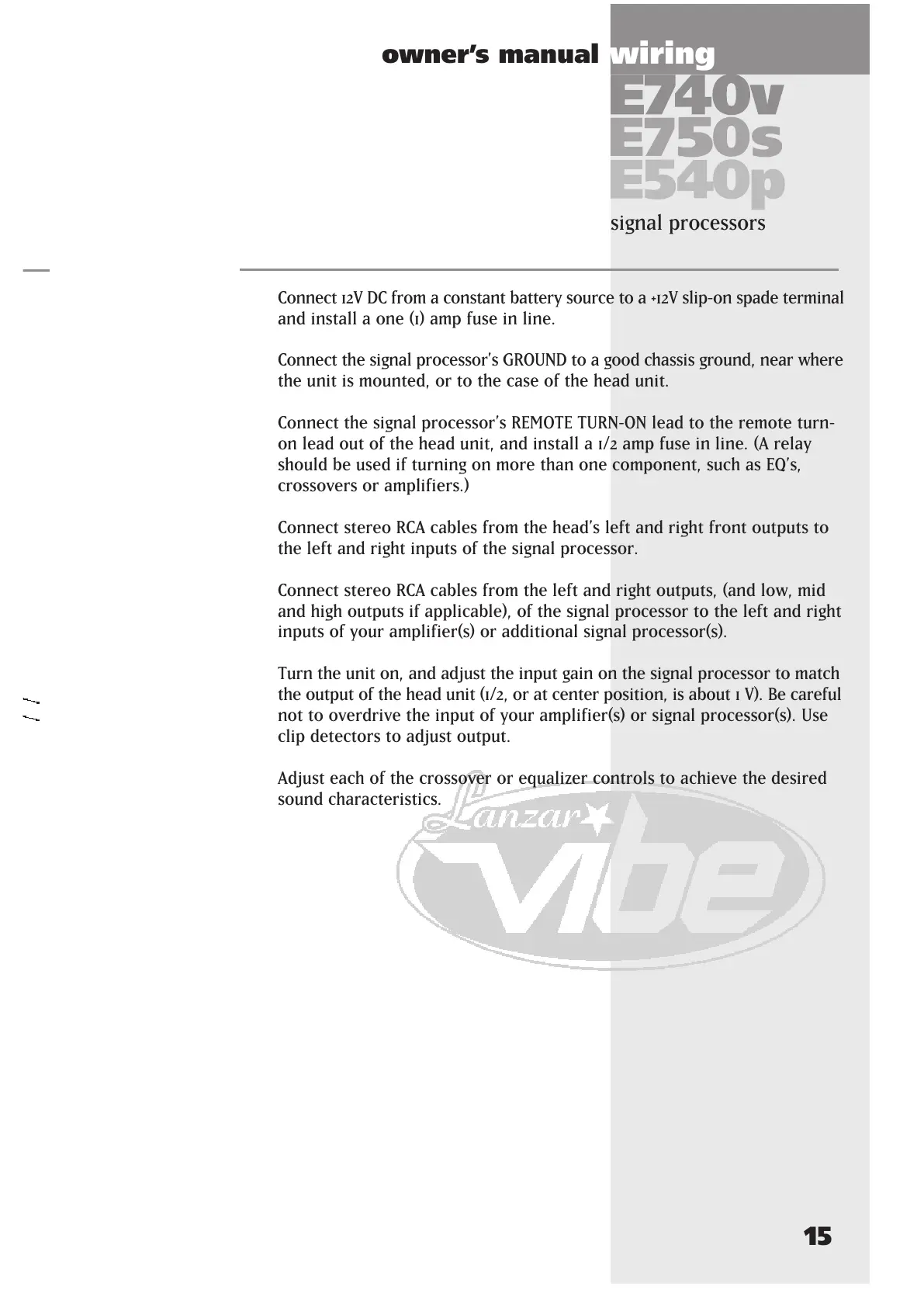 Connect the signal processor’s REMOTE TURN-ON lead to the remote turn-