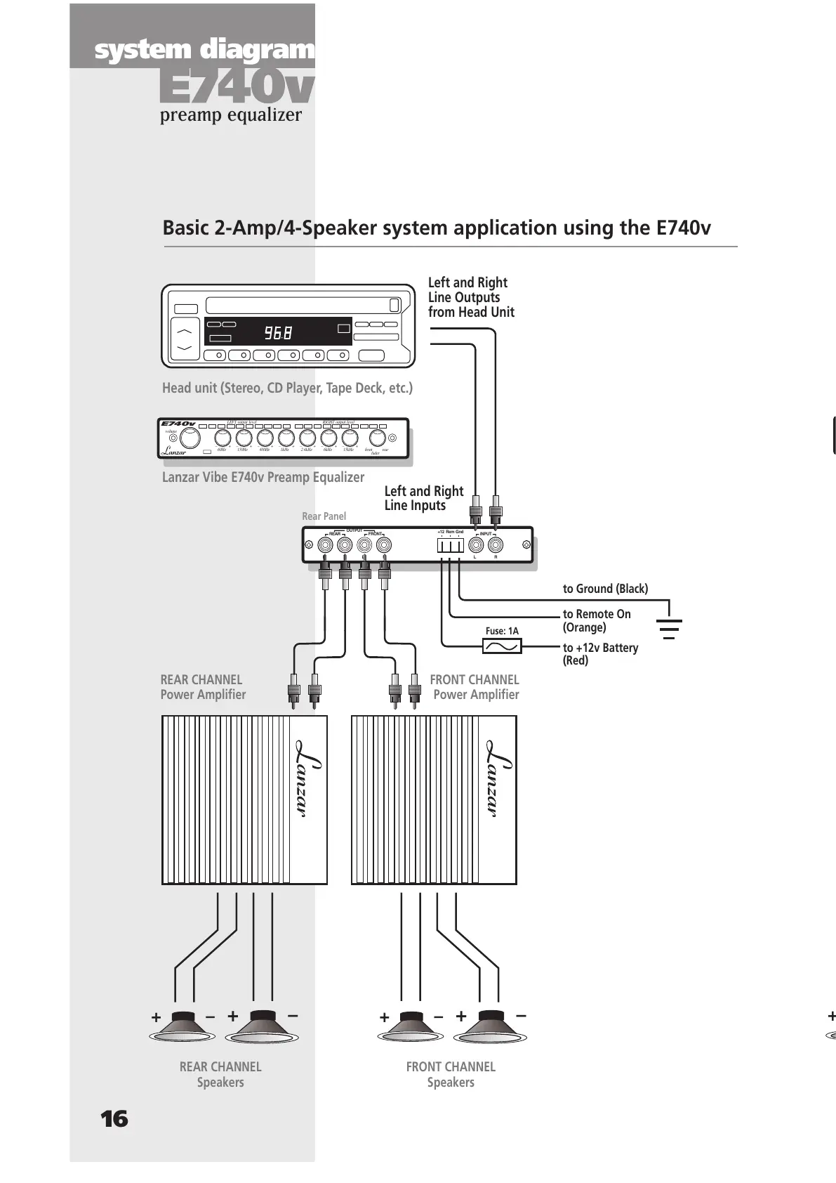 Basic 2-Amp/4-Speaker system application using the E740v