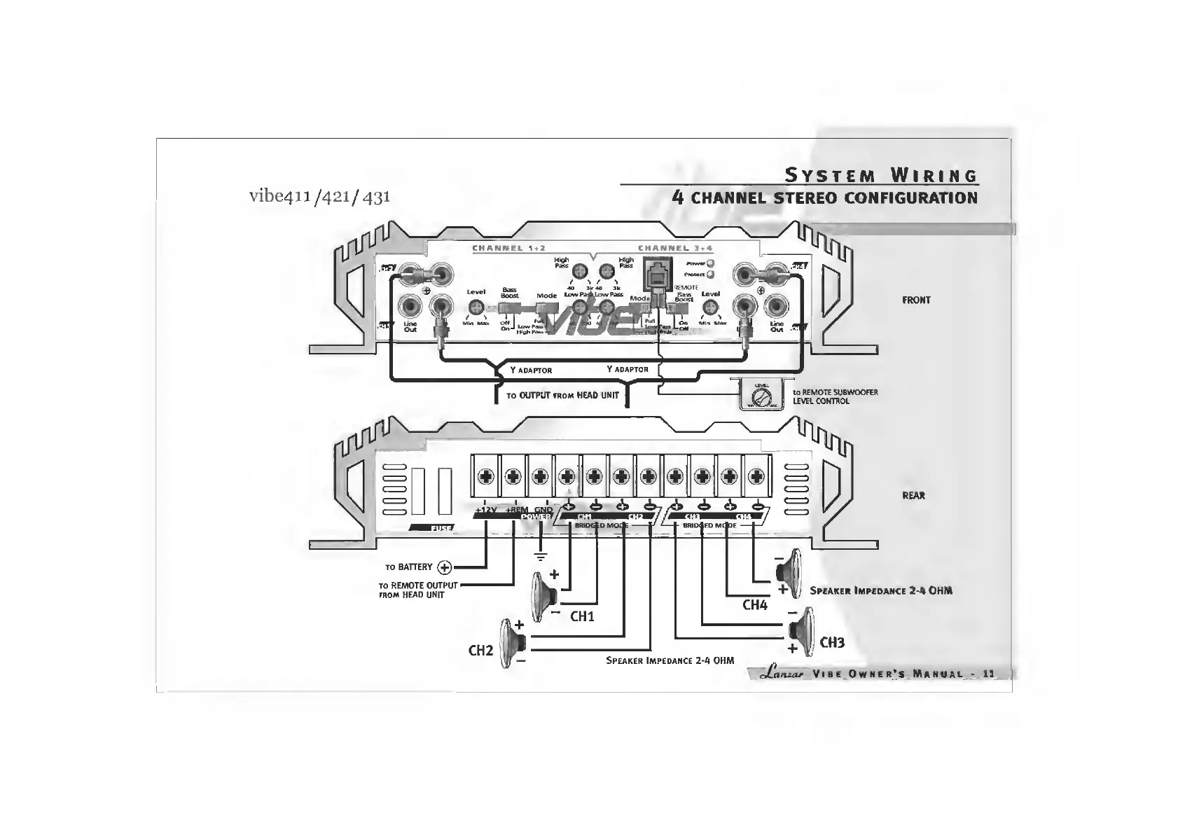 Lanzar VIBE211 - 4-Channel Wiring Modes