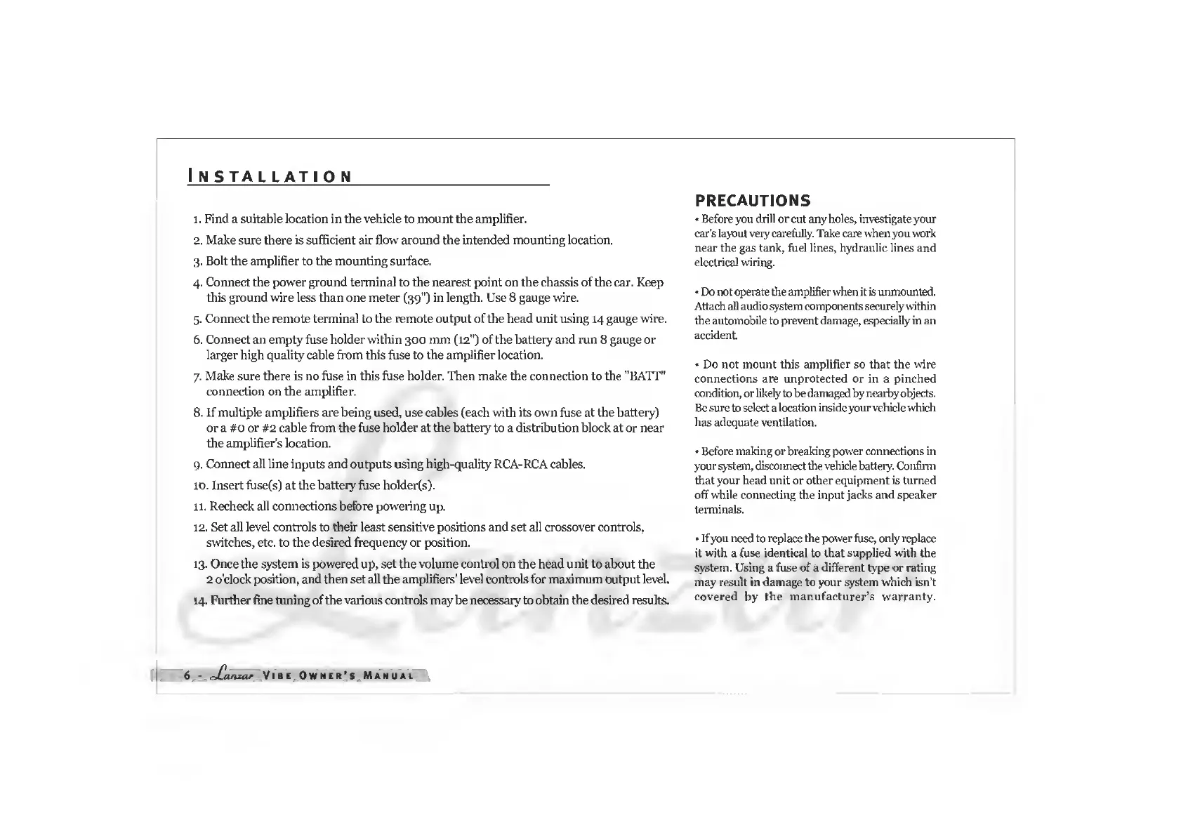 Lanzar VIBE211 - Installation Guide; Mounting and Wiring Procedures; Installation Safety Precautions