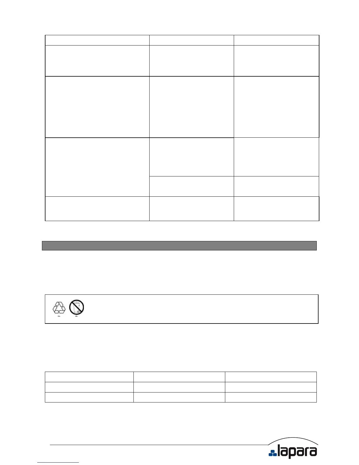 location. During storage, recharge the battery in accordance with the following table: