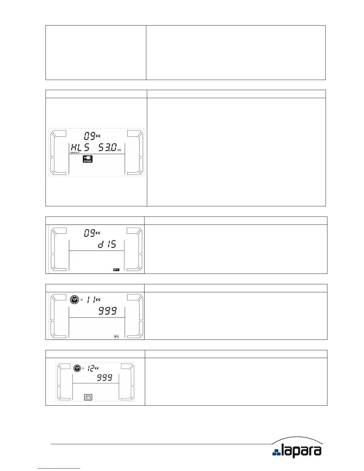 0-999: ajusta el tiempo de autonomía (durante el modo batería)