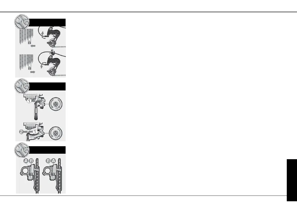 變速器一樣,可以通過微調螺絲調整前變速器的上下限位(A,B)。