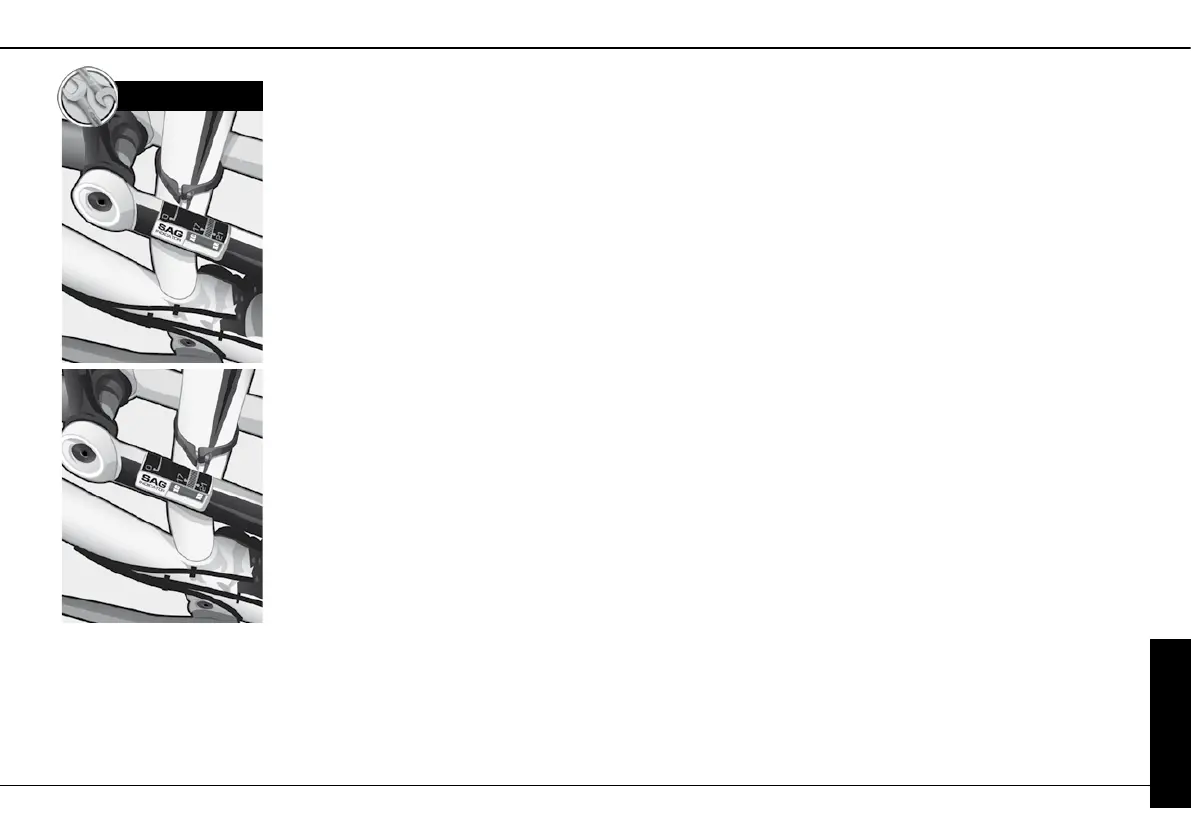 程。指示計位於後下叉的左側。預壓行程設置:Zesty從15~19 mm. Spicy17~21 mm, Froggy21~25 mm
