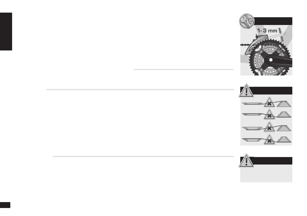 nastavte vnútornú vidlicu meniča prevodov tak, aby sa nachádzala vo vzdialenosti 0,5 mm až 1 mm od reťaze.