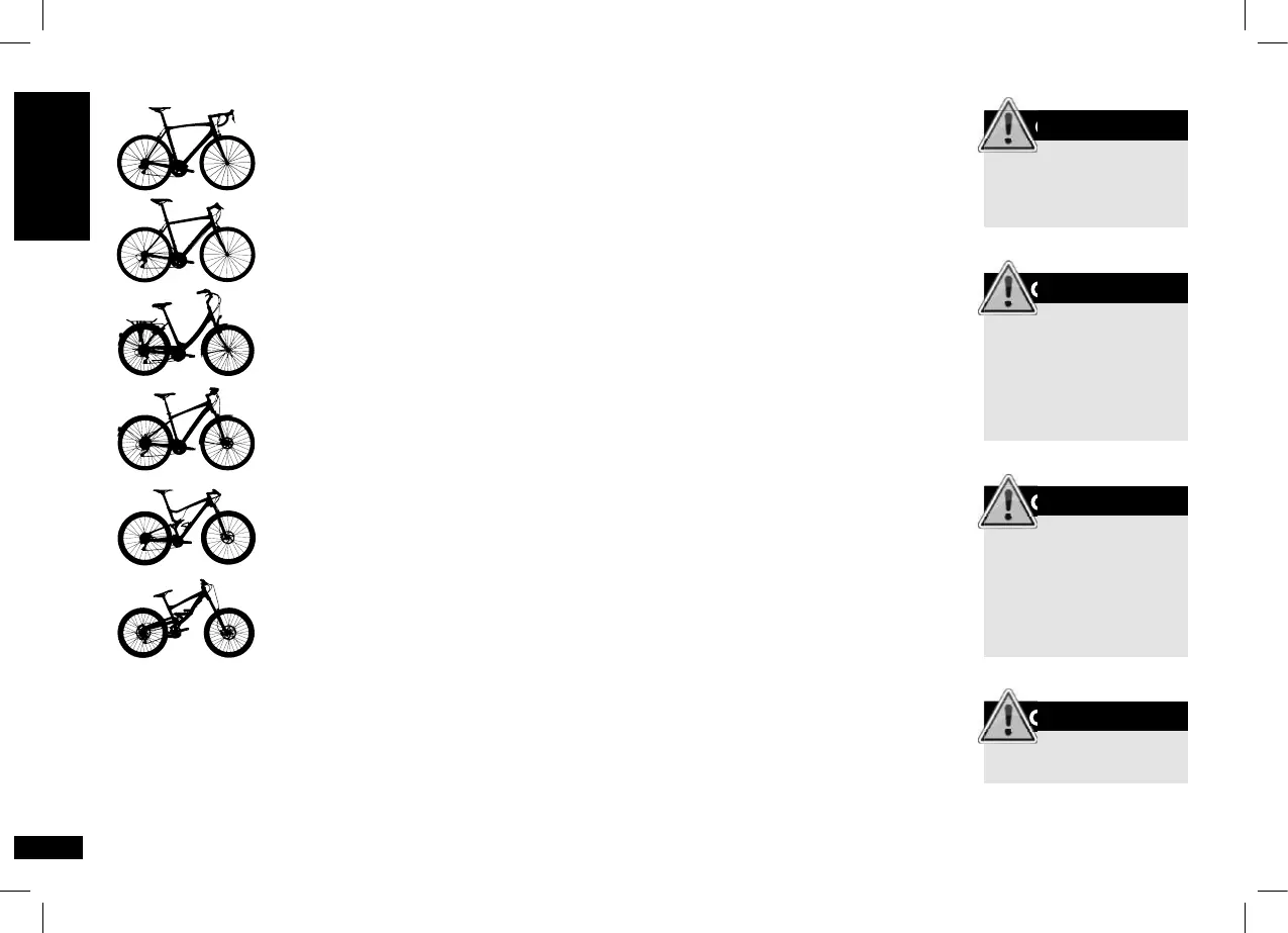 L’utilisation de votre bicyclette en dehors des conditions d’usage décrites ci-contre peut entraîner une