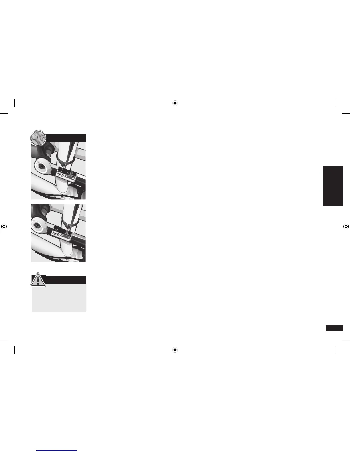 The sag should be adjusted from 21 to 25 mm according to your riding style and the type of terrain.