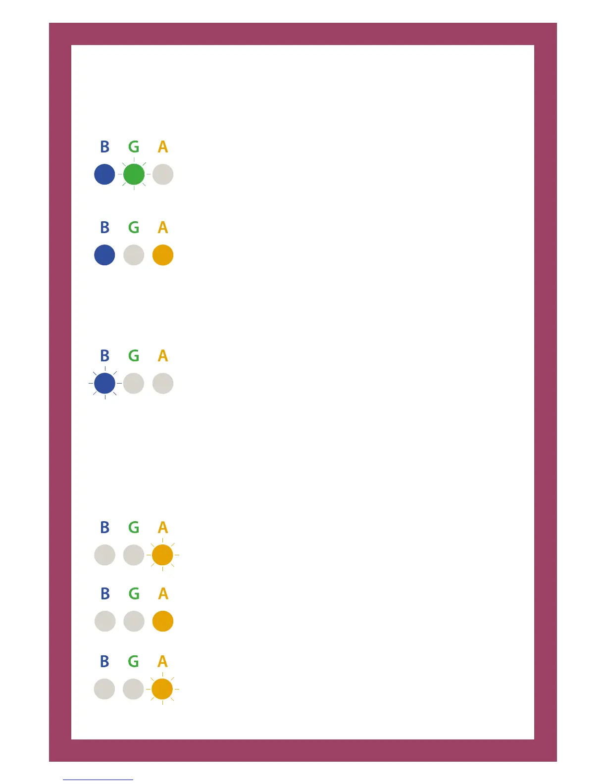 AMBER light o, GREEN light flashing slowly, and BLUE light on