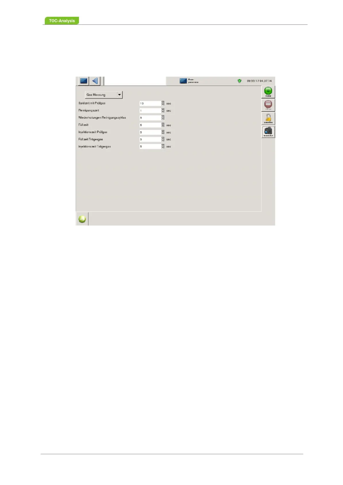 Here you can specify the time in which the device should inject the test gas from the injection loop into