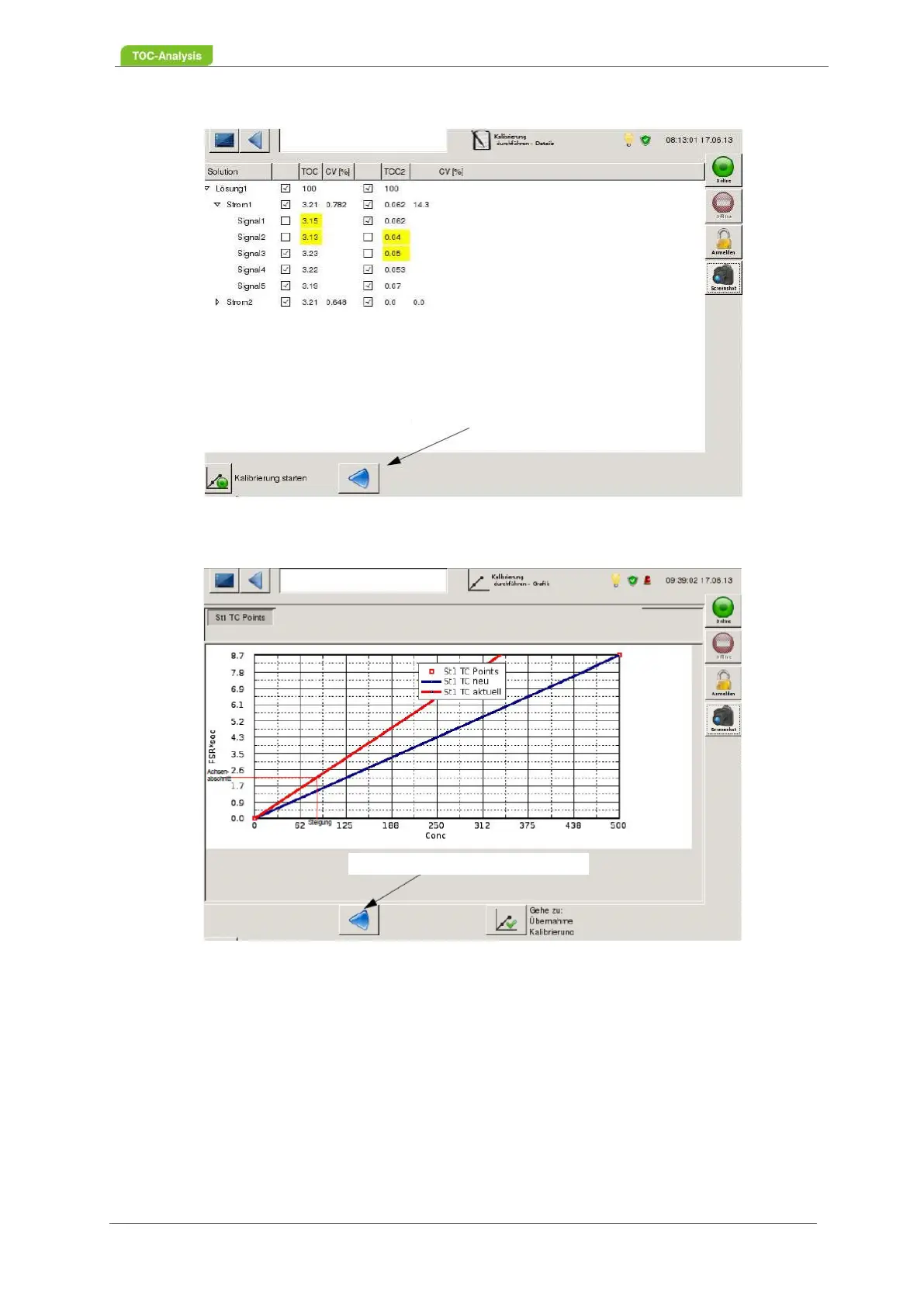 Please activate the calibration via the button "Activate the calibration results". The result is saved. Fur-