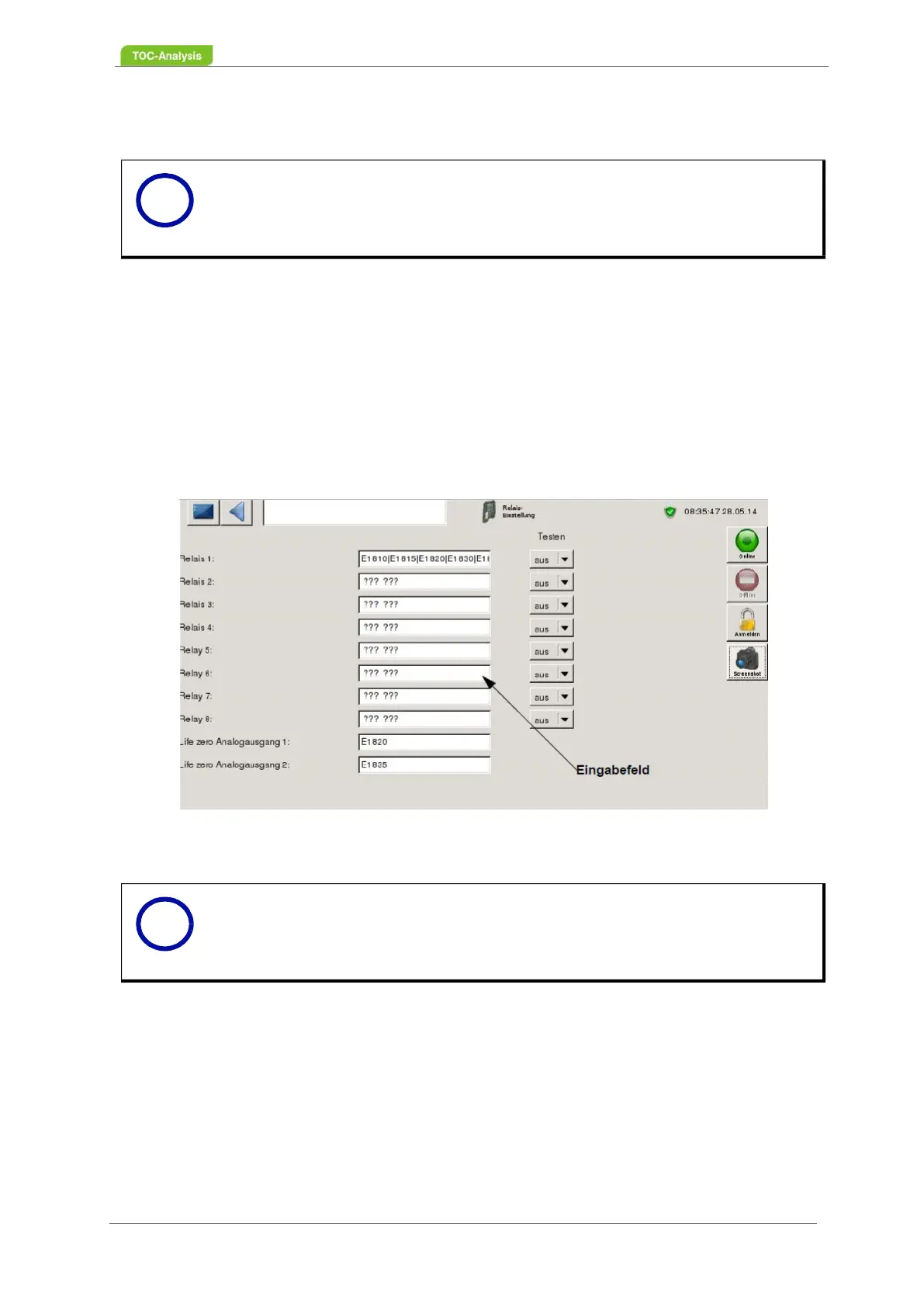 Fig. 63: Relay settings screen (Example)