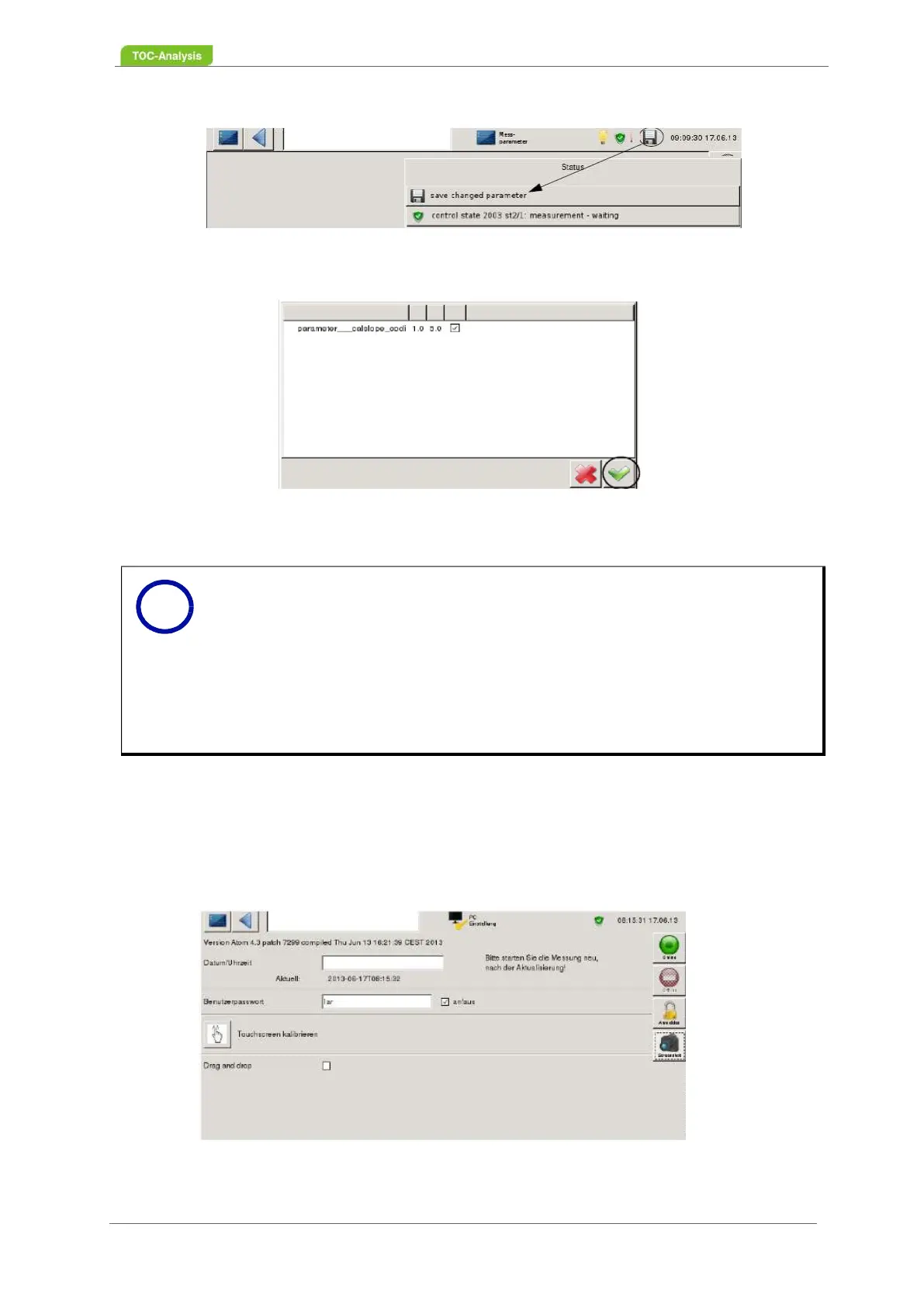 ring the saving process every parameter change can / should be checked. After pres-