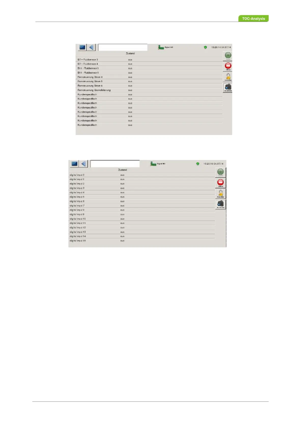 These three screens show the status of digital outputs 1, 2 and 3. The values can be changed manually.