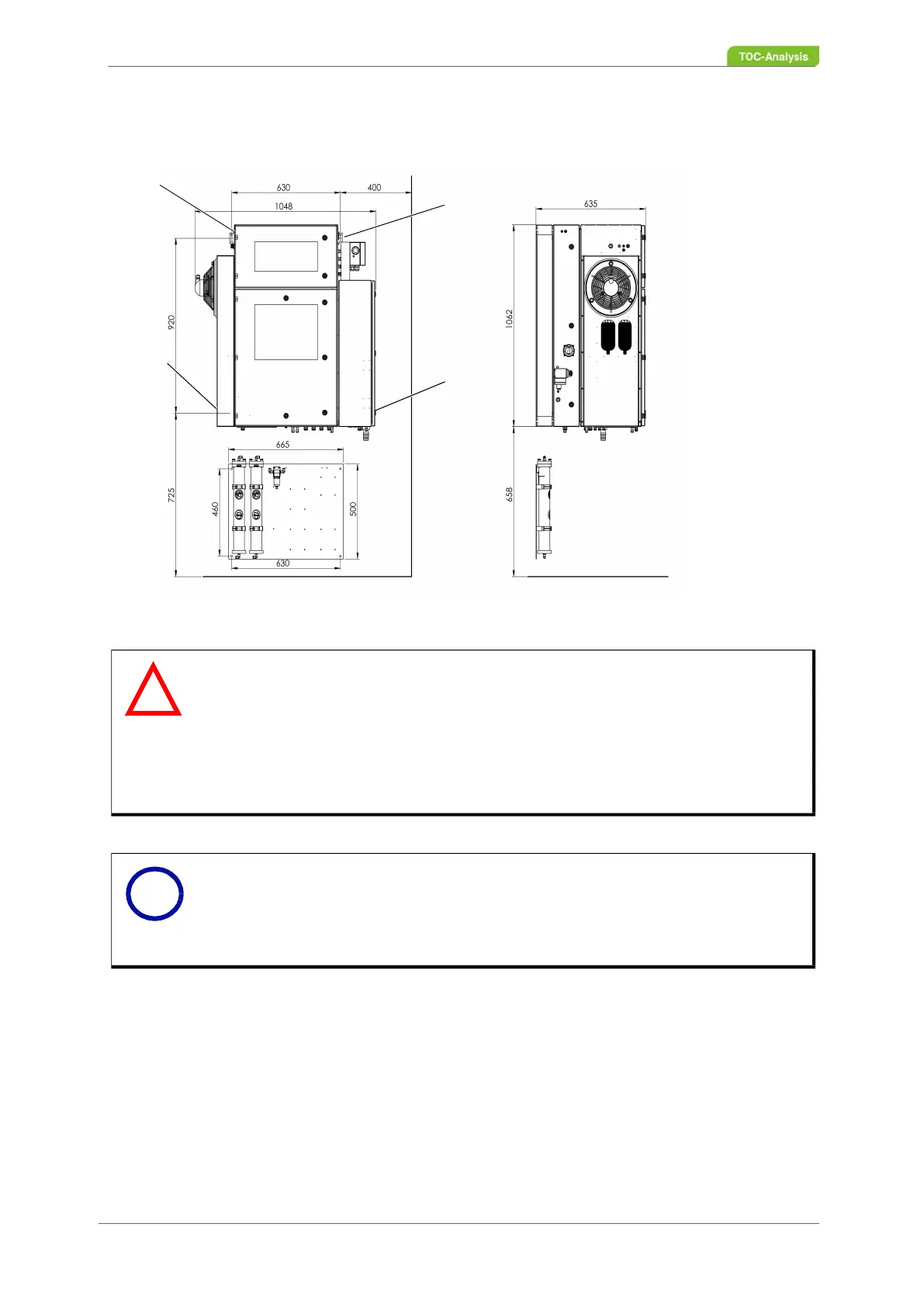 The distance to side and opposing walls must be kept so that the analyser can be ope-