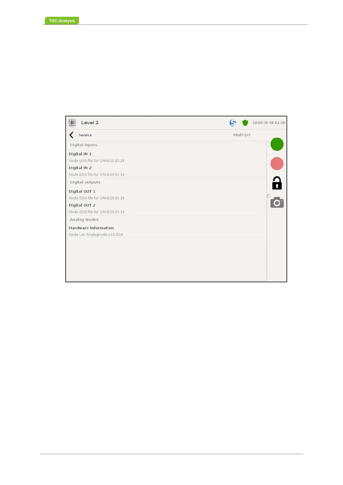 In this view certain inputs and outputs can be viewed and checked: