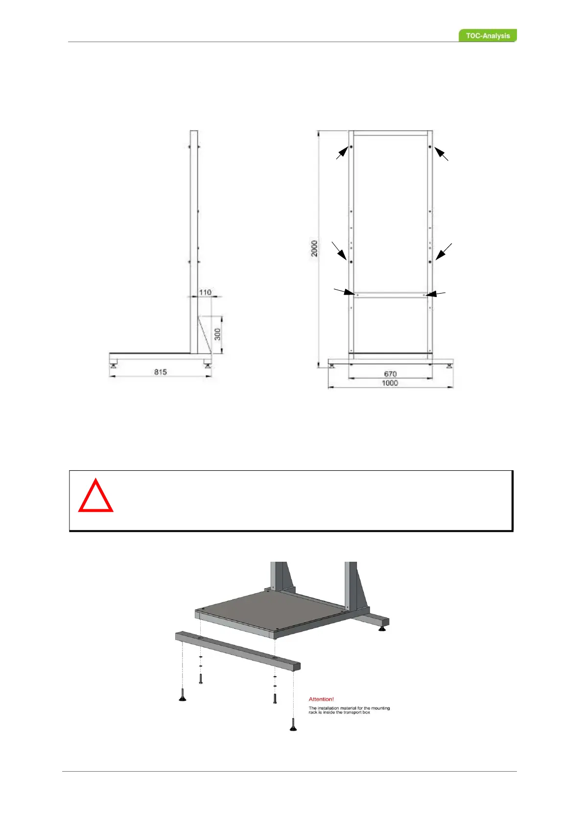 The LAR mounting rack is not fully assembled on delivery. The cross braces