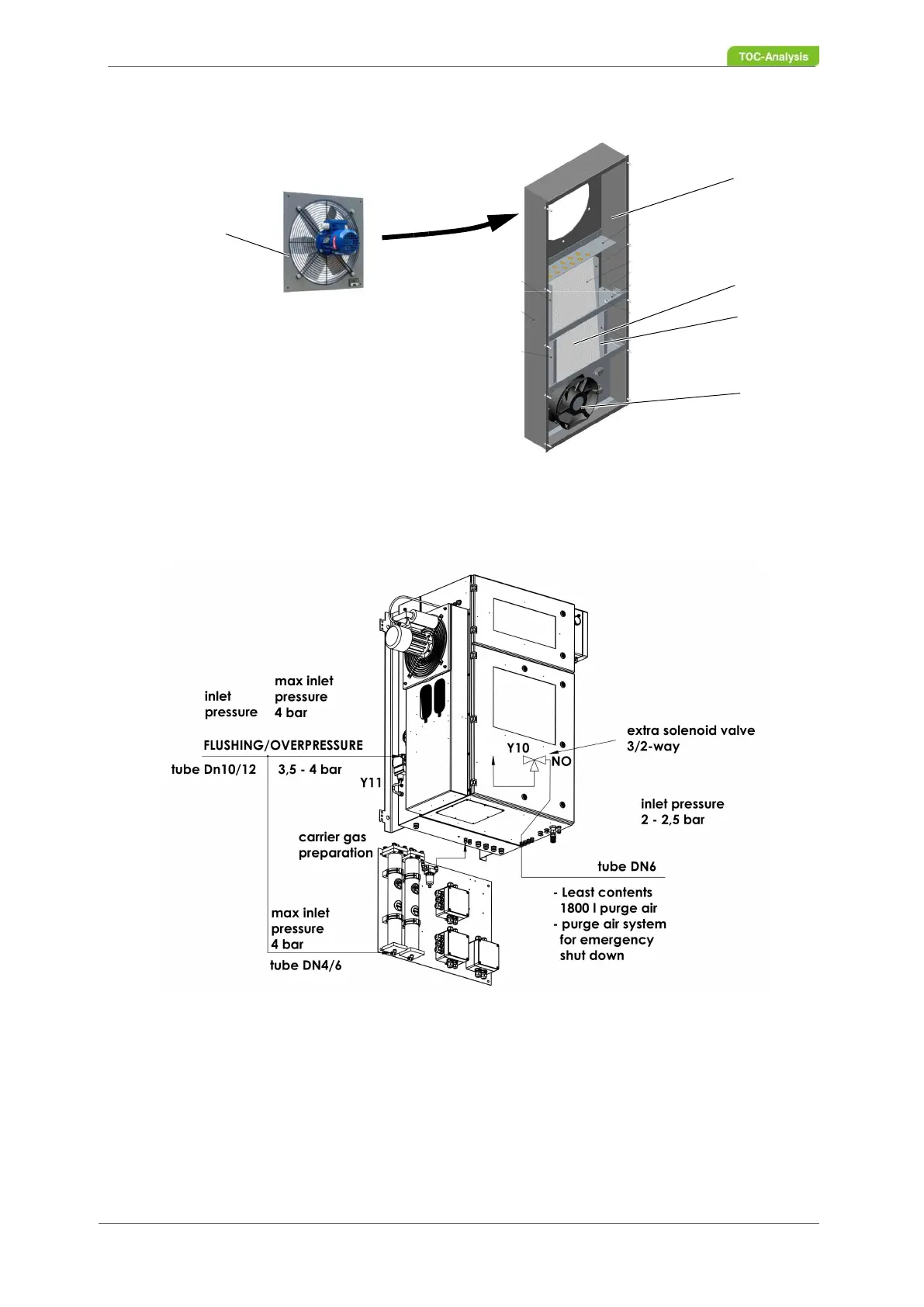 Fig. 23: Tubing for carrier gas, overpressure and emergency cooling