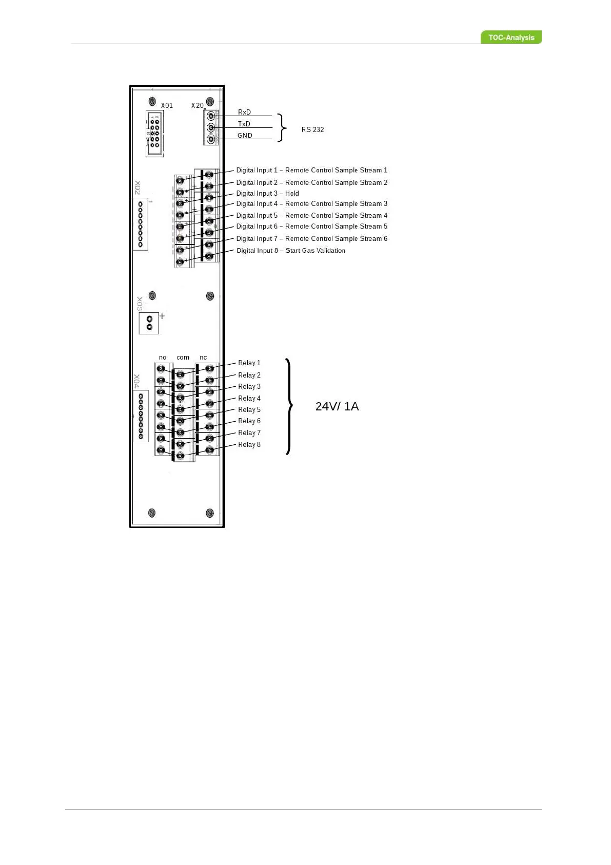 Fig. 28: TRC-Board (RS 232 serial interface, digital inputs and relays)