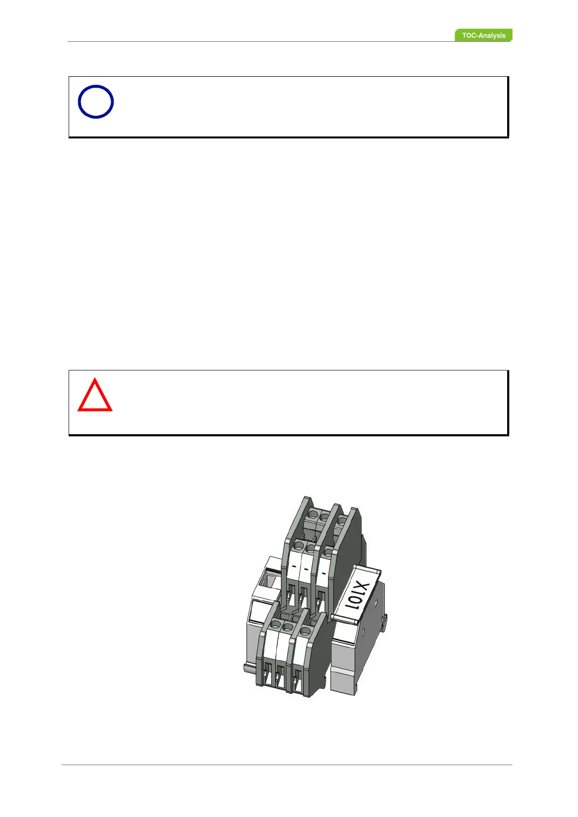 installation plate of the analyser (Fig. 25, page 36) is terminal strip X101 for the analog outputs (Fig. 29,