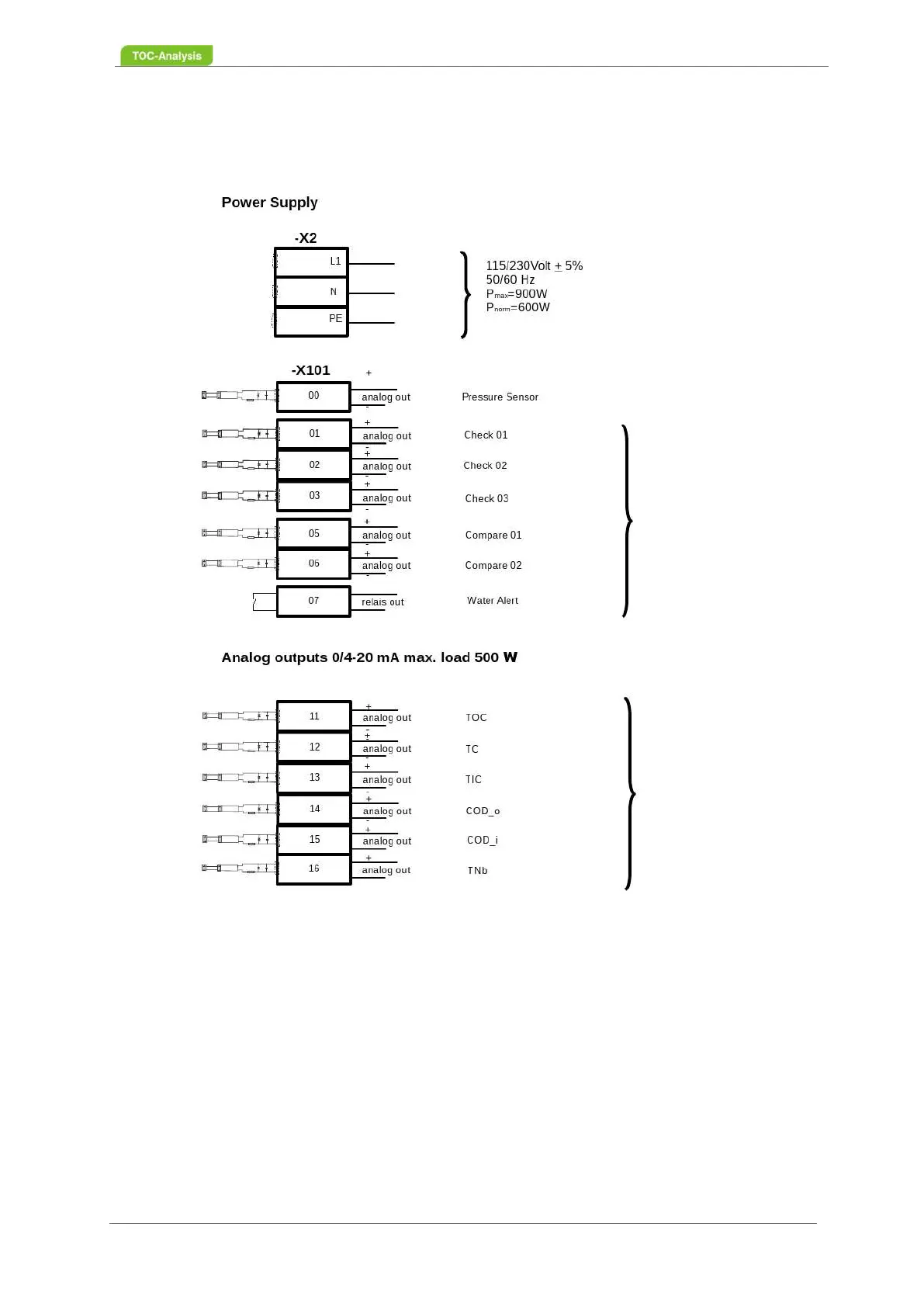 Fig. 30: Terminal Diagram (Part I) - Power Supply, established Analog Outputs, programmable Ana-
