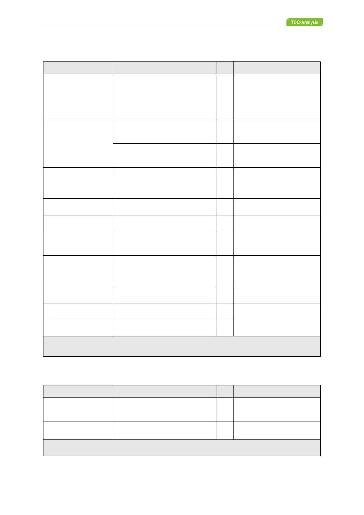 Table 5: Installation log of the analyser